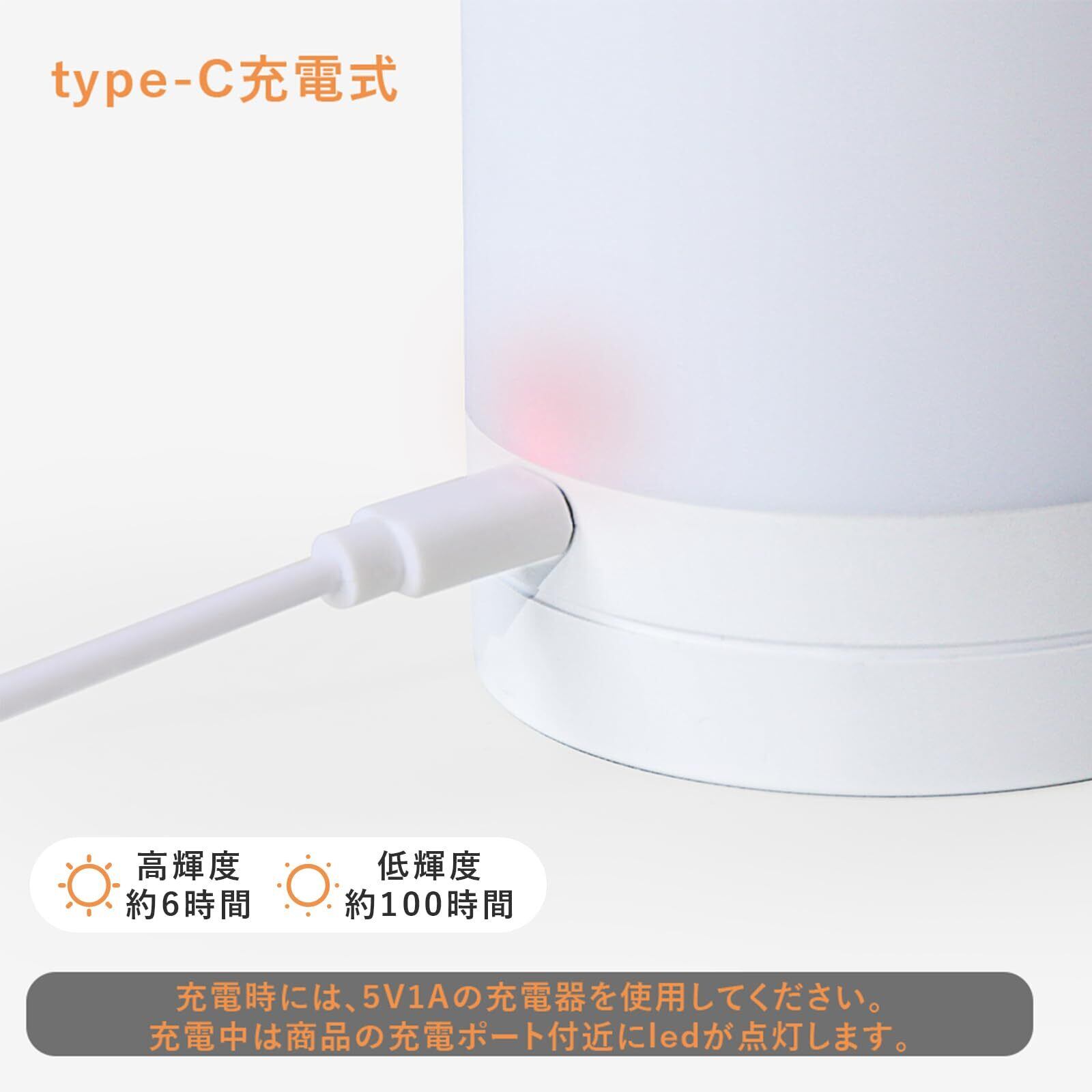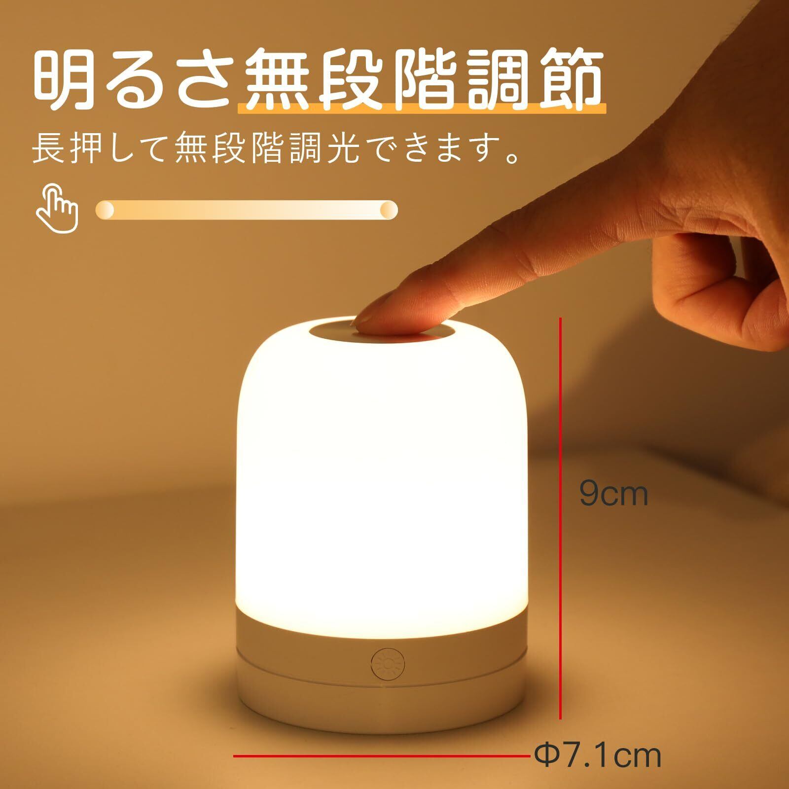 【充電式・コンパクト】ナイトライトには1200mAhのリチウム電池を搭載し、フル充電で6-100時間使用可能です。また、このランプは充電しながら使用することができ、ledランプなので長時間使用しても熱くならない。直径7cmの小さすぎない大きさは、枕元やベッドサイドにおいても邪魔にならず、ちょうどよい明るさを確保できます。