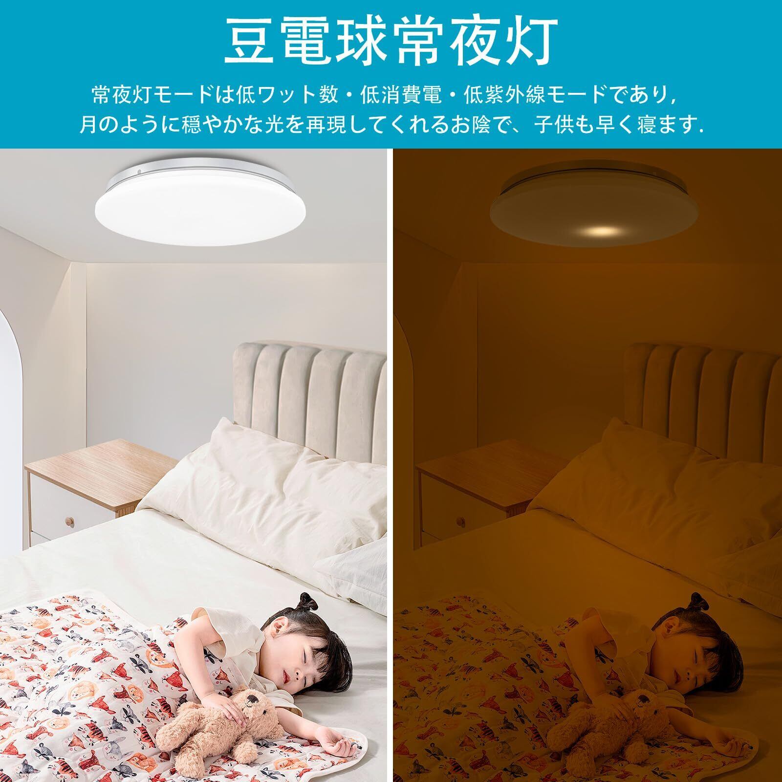 【メモリ機能・ON/OFFタイマー】リモコンでライトの明るさと色温度を調節し、30秒後に記憶されます。次回点灯時に記憶されたパターンから点灯します(ご注意:メモリ機能はリモコンで設定すること)。リモコンには30分/60分後の自動消灯の設定ができます。独立制御の豆電球常夜灯付き、低消費電力の常夜灯は夜間の睡眠や高齢者のケアに最適です。