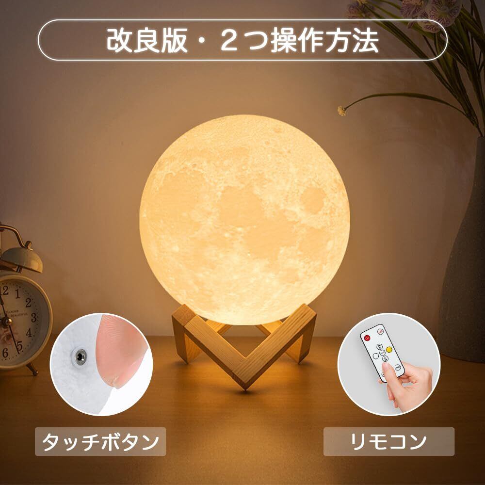 【2023.6.16から進化版・リモコン付き】2つ操作方法あり、球体のタッチボタンとリモコンで明るさと色温度を調整可能。柔らかさや温もりを感じてお部屋の雰囲気をより上質感溢れて、こんな魅力がこのムーンライトにはある。