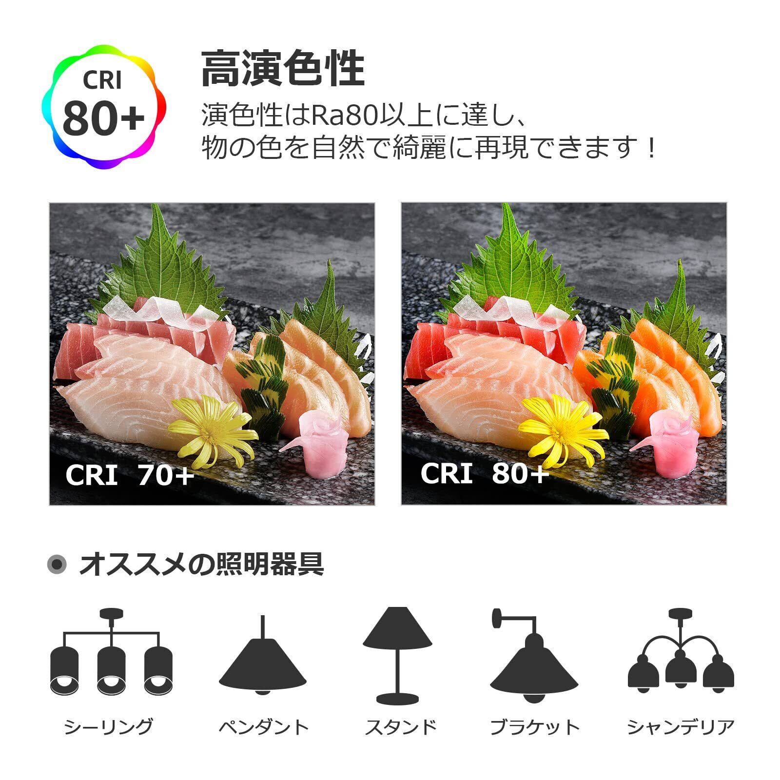 【高演色性・長寿命】電球の演色性はRa80以上に達し、物の本当の色を自然で綺麗に再現できます。寿命は一般白熱電球の約40倍、長持ちで取替えが大変な場所にお勧めします。帰省時両親のプレゼントに、トイレ、浴室、キッチンなど切れたら困る場所に最適。