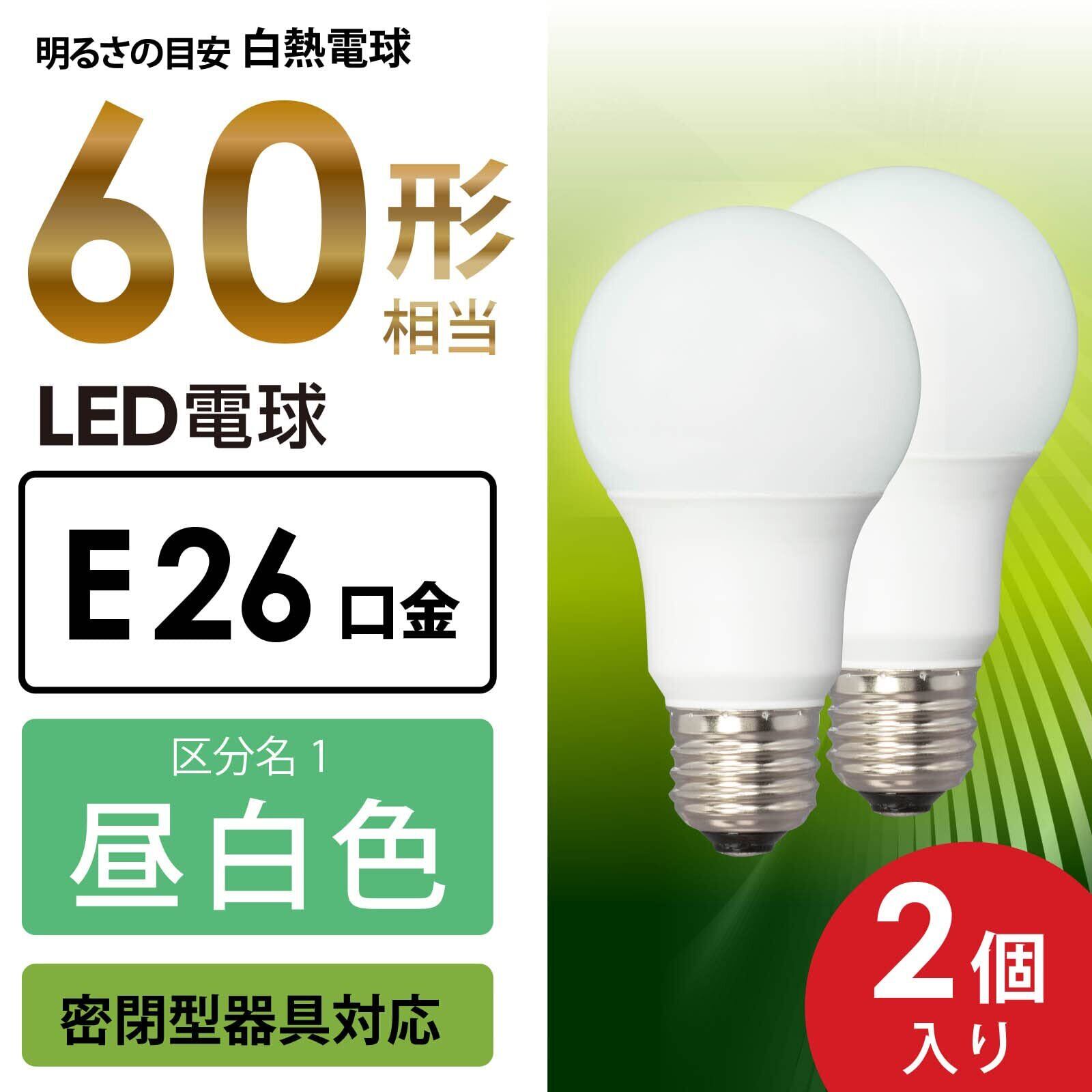 【 特 長 】● 全光束860ルーメン、白熱電球60形相当の明るさ● 光の広がり約280°の全方向タイプ● 密閉形器具対応● 省エネ法2027年度目標基準達成● 昼白色● 口金はE26● LED5年対象商品● 2個入り