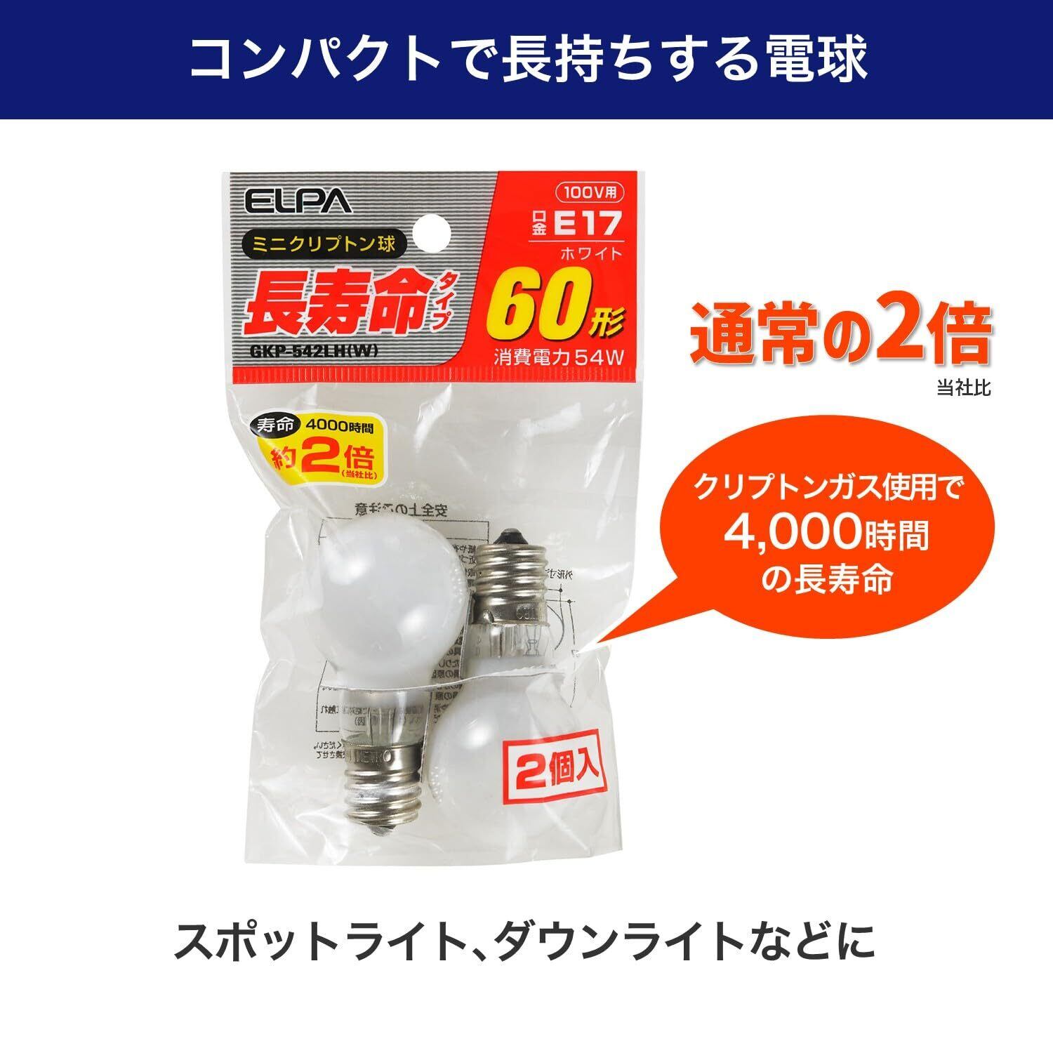 エルパ(ELPA) 長寿命ミニクリプトン球 GKP-542LH(W) ホワイト 60W 2個