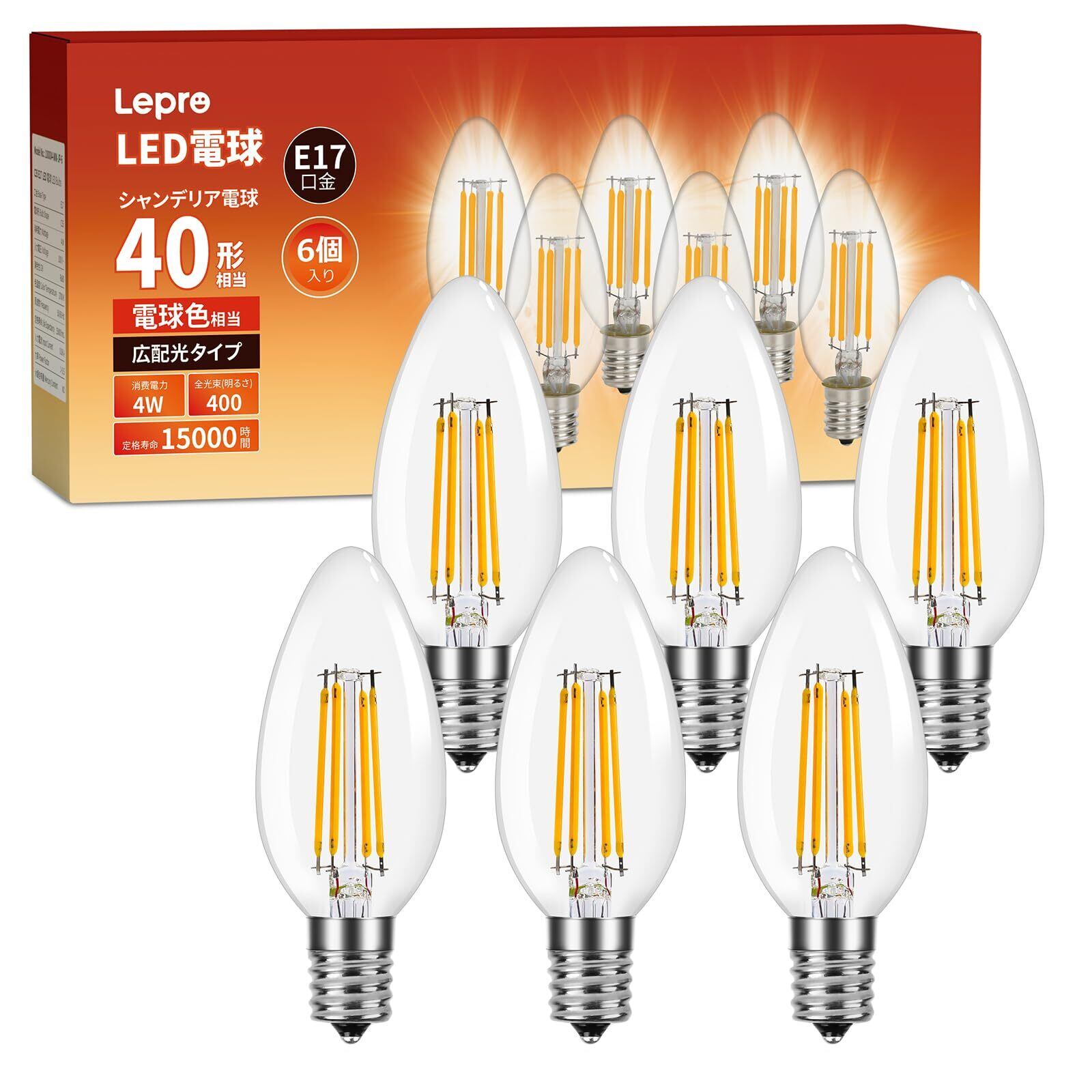 【在庫処分】Lepro LED電球 E17 全方向 40W形相当 電球色 シャンデリア電球 6個パック 非調光型 口金直径17mm C35 フィラメント 高演色性 クリアタイプ 密閉器具対応 4W 省エネ シャンデリア風 蝋燭型 レトロ キャンドル led照明 日本PSE認証済