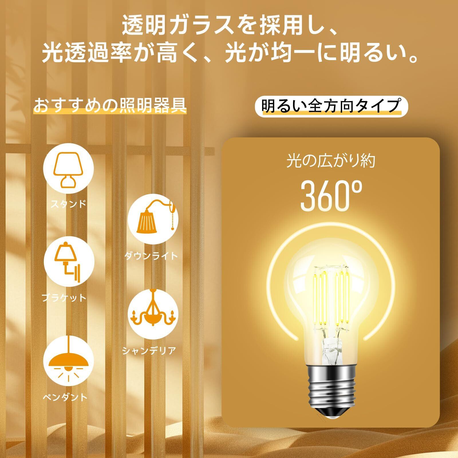 ◎眩しさを防ぐ·高演色性:クリア電球は透明ガラスで作られ、光透過率が高く、光が均一に明るい。長時間使っても目が疲れません。演色指数(CRI)≥85の高演色性は、物体本来の色を自然に再現することができる。LEDフィラメント電球は小型で軽量、取り付けが簡単で、スイッチを入れた瞬間に点灯する。玄関灯、ダウンライト、シーリング、ウォールランプ、ブラケット、卓上ランプなどの照明器具に簡単に使用できます。