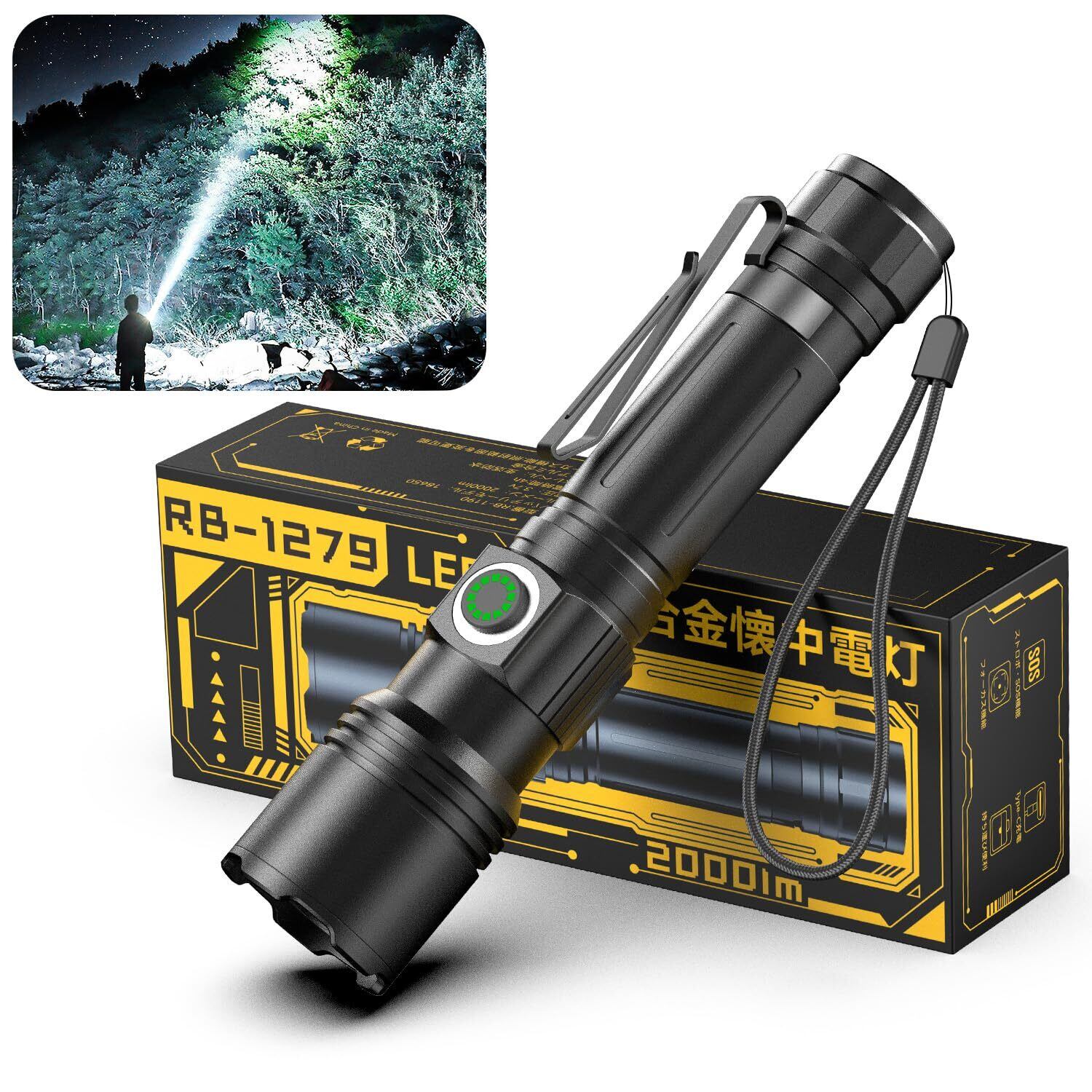 懐中電灯 強力 フラッシュライト Type-C充電式/電池式/ 5モード調光/ IPX6防水/耐衝撃/ズーム式 ハンディライト 最大照射距離500m クリップ付き 作業用 防災 登山 夜釣り 停電/避難対策 防災グッズ RB-1279