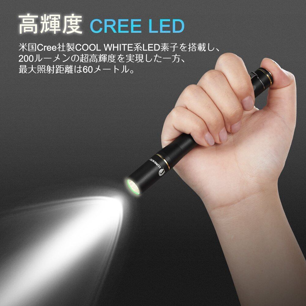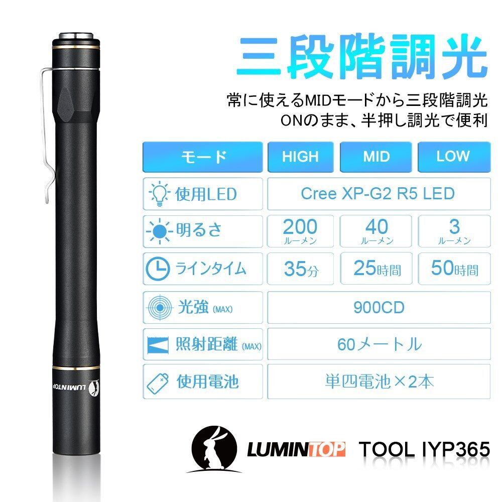 LUMINTOP IYP365 ペンライト LED懐中電灯 明るさ200ルーメン 実用点灯50時間 アルミ合金製 小型 診察用懐中電灯 軽量 3段階調光 IPX8防水 耐衝撃1.5M 単四電池対応