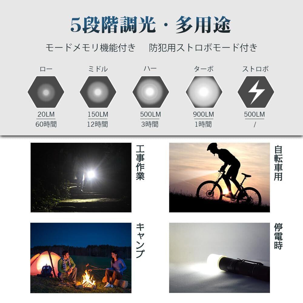 LUMINTOP 小型軽量led懐中電灯明るさ900ルーメン連続照明60時間5モードIP68防水、耐衝撃性1.5メートル、ハンディライト(クールホワイト、バッテリー、マグネットテール付き)Tool AA 3.0-BLACKセット