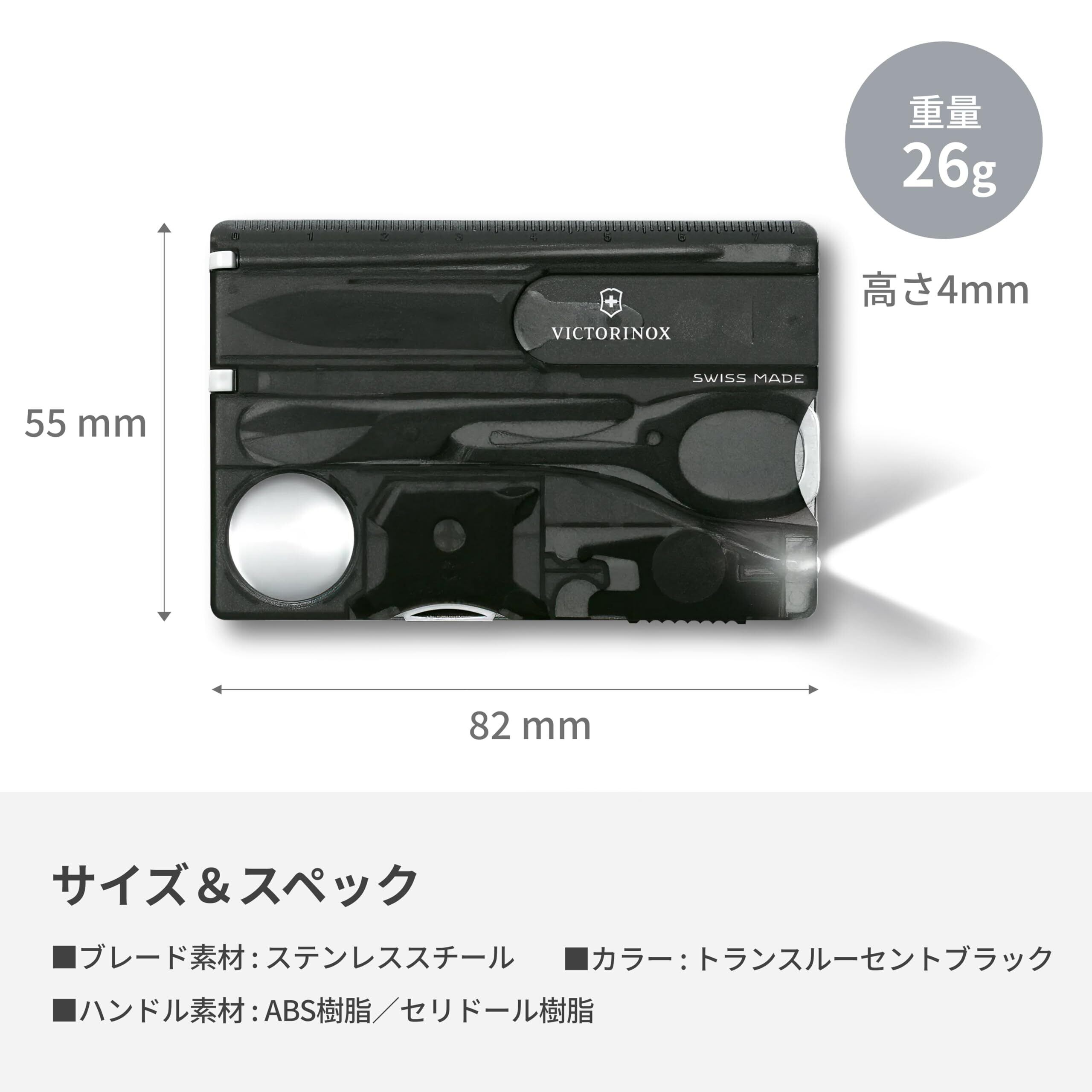 VICTORINOX(ビクトリノックス) スイスカード ライト 全3色 スイス・アーミーナイフ 多機能 文房具 ステーショナリールーペ ボールペン LEDライト フィリップスドライバー付 13機能を搭載したスイス製マルチツール デザイン賞受賞 小型 コンパクト