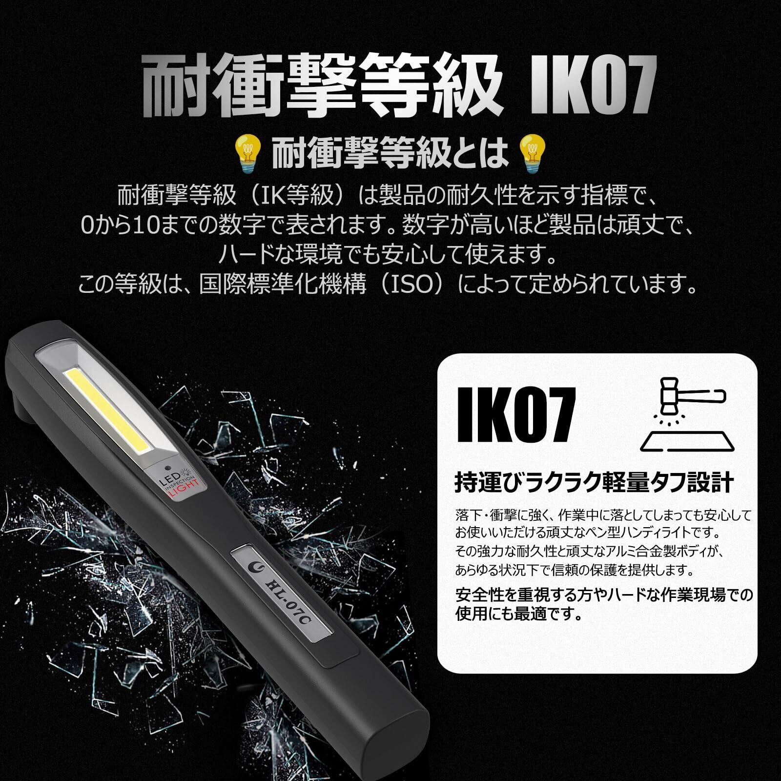 【耐衝撃ボディ】IK07仕様で衝撃に強く、落下や衝突による故障リスクを低減します。屋外や工事現場など過酷な環境でも安心して使用可能。