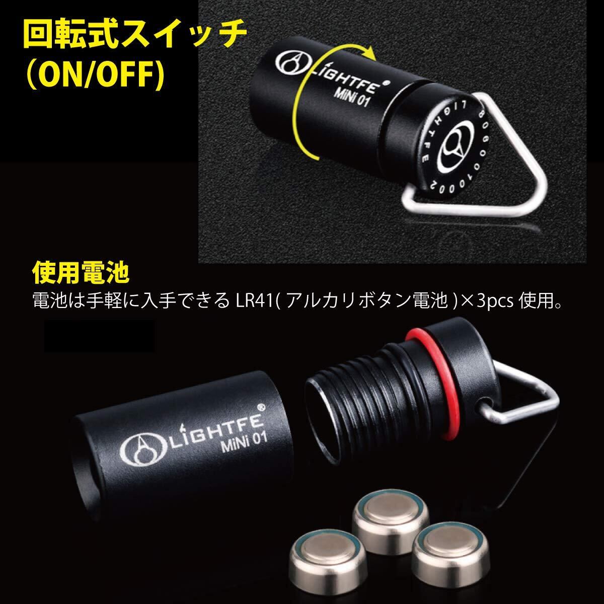 FUJIMORI LED キーホルダー 懐中電灯 ライト 小型 軽量 防水 省エネ 強力 輝度 軍用 停電 防災 対策 LEDライト 完全防水 超小型 超軽量 弾丸 ミニライト (ブラック)