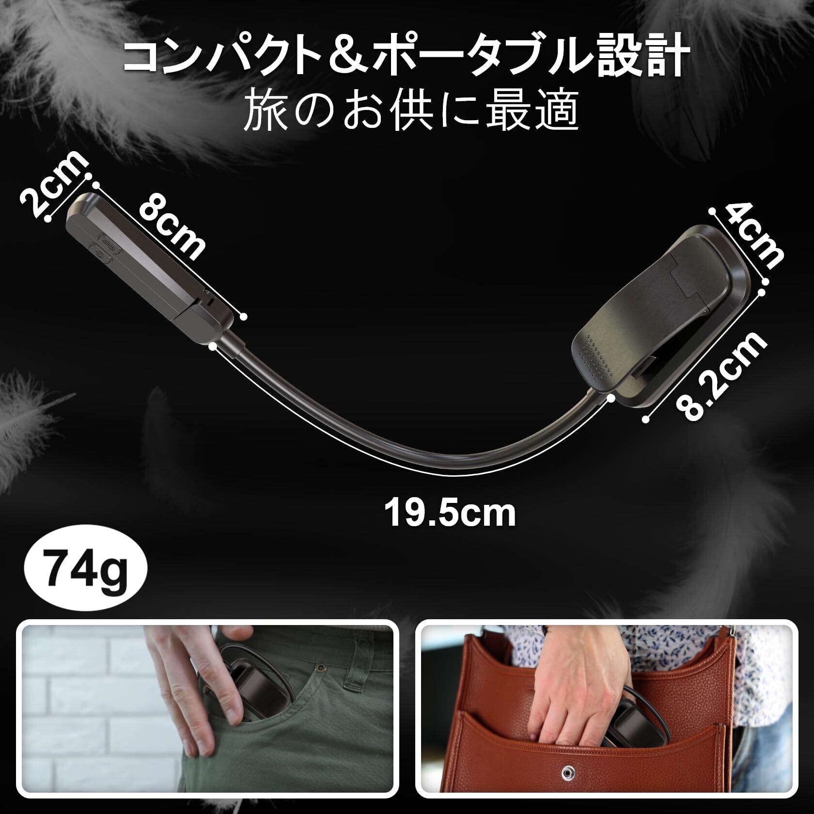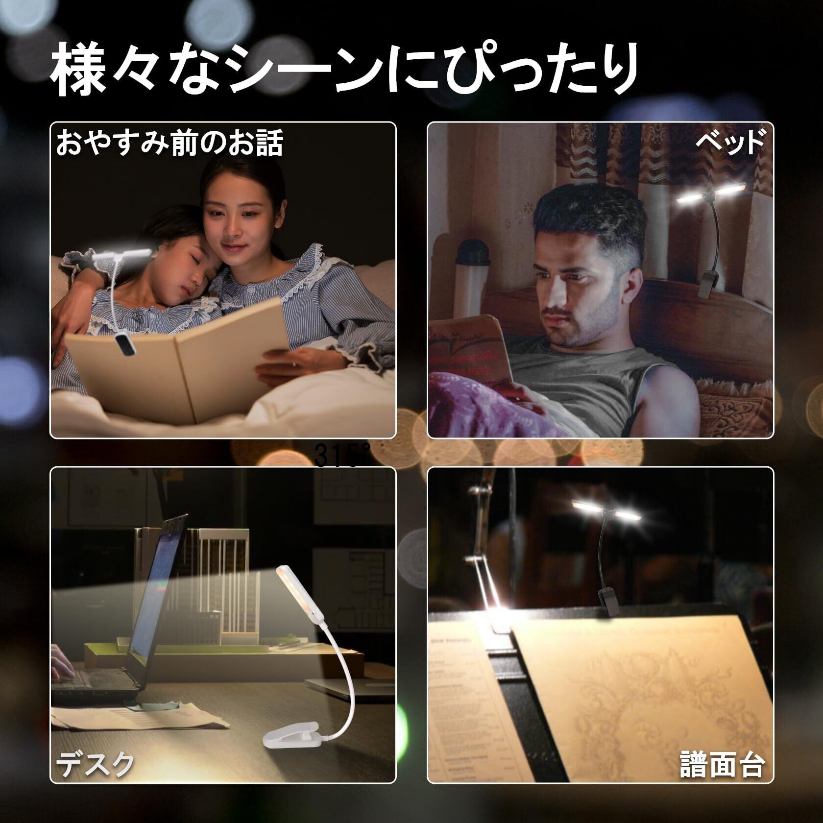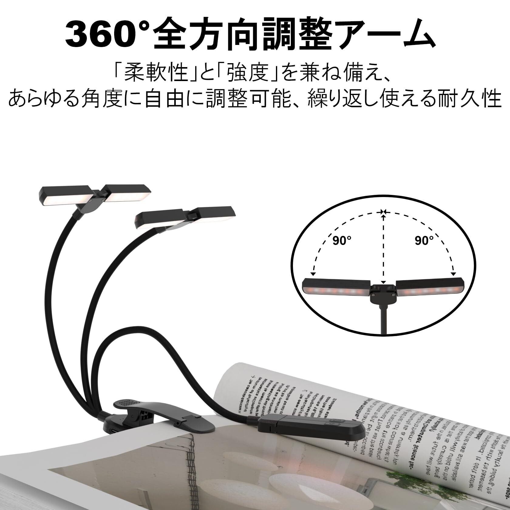 【ダブルヘッドデザイン】この小型ブックライトは、ダブルヘッドデザインで、読書や楽譜台に最適な光を提供します。2つのヘッドは自由に角度調整でき、停電時の緊急照明や授乳時にも便利です。コンパクトなデザインで、書籍、デスク、楽譜台に簡単に取り付けられます。