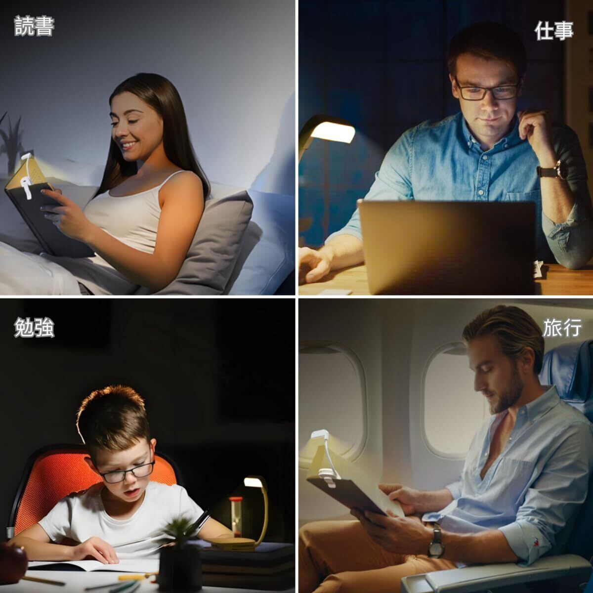 【本を傷つけない|マルチクリップ機能】 滑らかな高品質プラスチック製のクリップを採用。大切な文庫本やハードカバー、薄い雑誌まで、傷をつけることなくしっかりとホールドします。本だけでなく、衣類に挟んでハンズフリーの作業灯としても活用可能。デスクに置けばミニデスクライトや常夜灯に、停電や地震などの非常時には「防災用の懐中電灯」としても役立つ多機能モデルです。