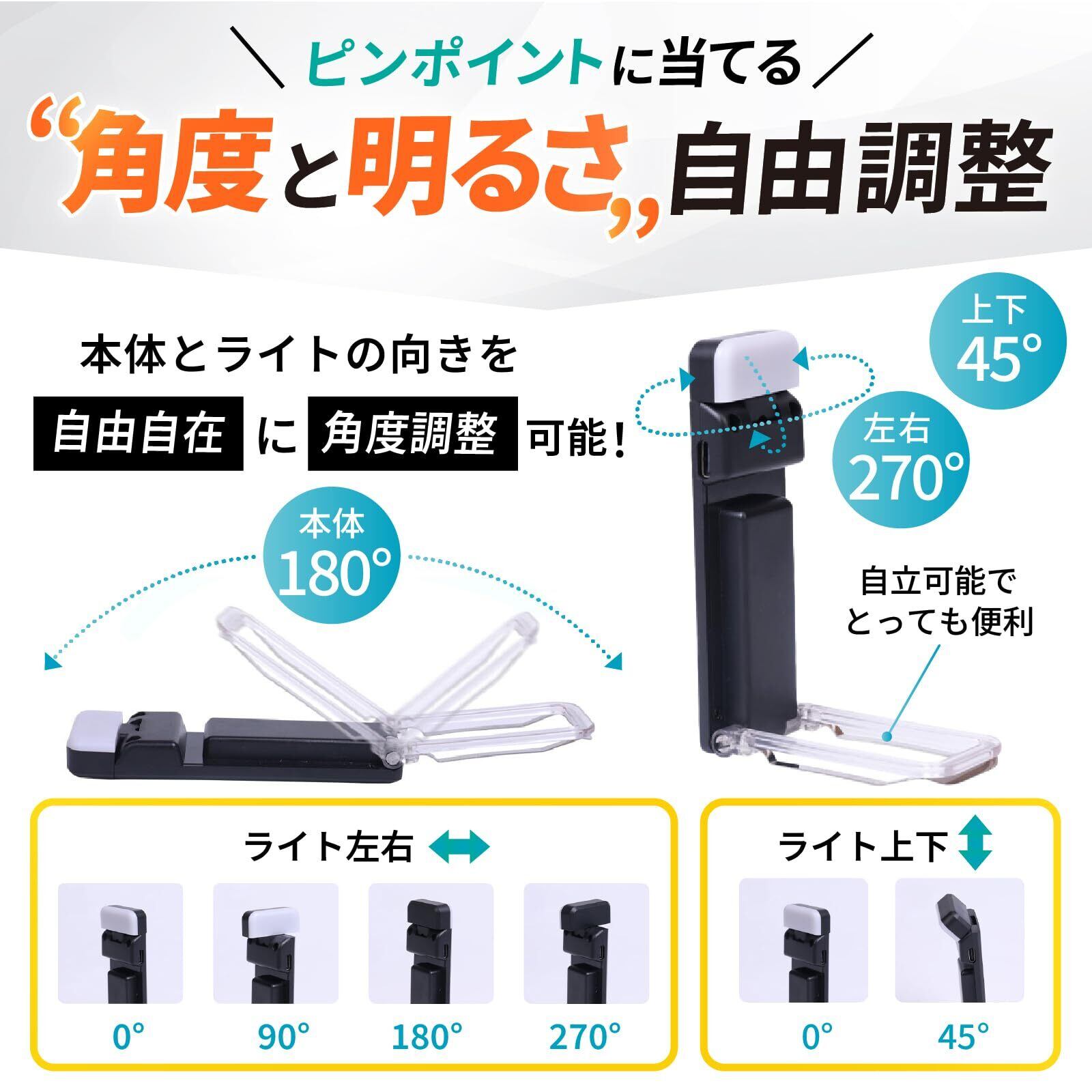 【USB-C Type 充電式】汎用性が高いUSB-C Typeで充電が可能です。パソコンのUSBポート、アダプタ、などで簡単に充電できるようになっています。 400mAh バッテリーが内蔵され、最大 80 時間まで使えます (使用時間は明るさによって異なります)。 インジケーターが付いており、残りのバッテリーが確認できるので充電のタイミングが分かりやすいです。
