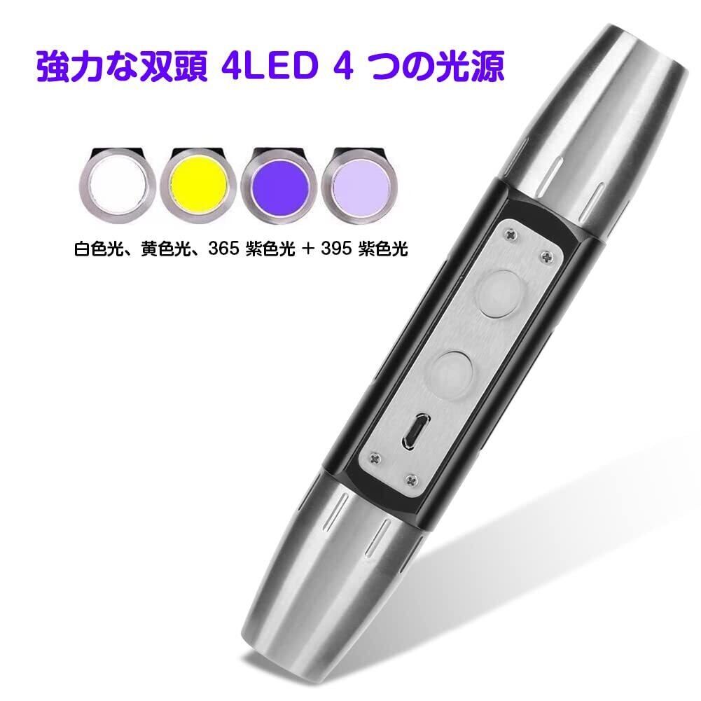 【商品仕様】目的: ジュエリー懐中電灯;光玉:光玉4個;光源:白色光(強光-弱光)、淡黄色(強光-弱光)、365紫光+395紫光;バッテリー: 充電式リチウム電池;容量: 3200MAH (付属);充電方法:USB充電;LED 寿命: 100000 時間。