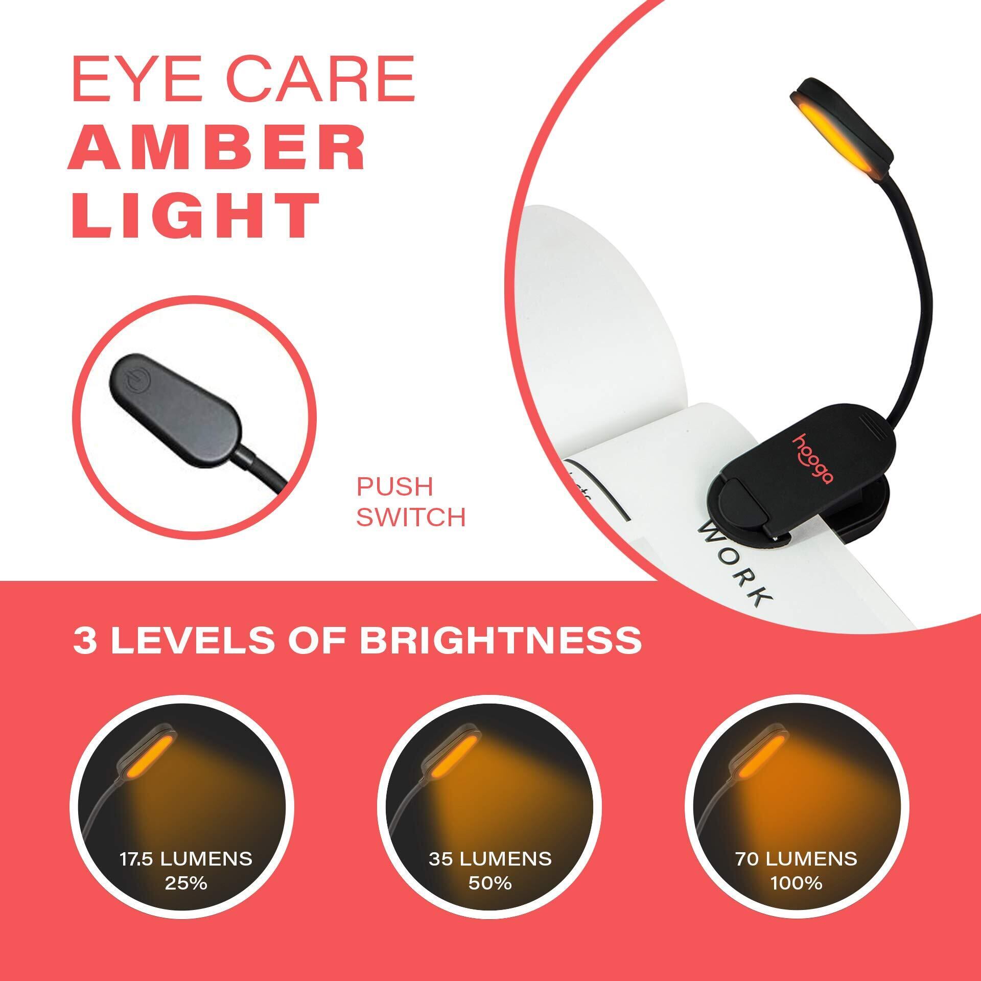 【人気商品】Hooga (フーガ) ブックライト ブルーライトブロック アンバー クリップオン読書灯 ベッドでの読書用、1,600Kの暖色LED。 睡眠補助ライト。 充電式1,200mAhバッテリー。 明るさ調節可能。 Kindlesに対応。