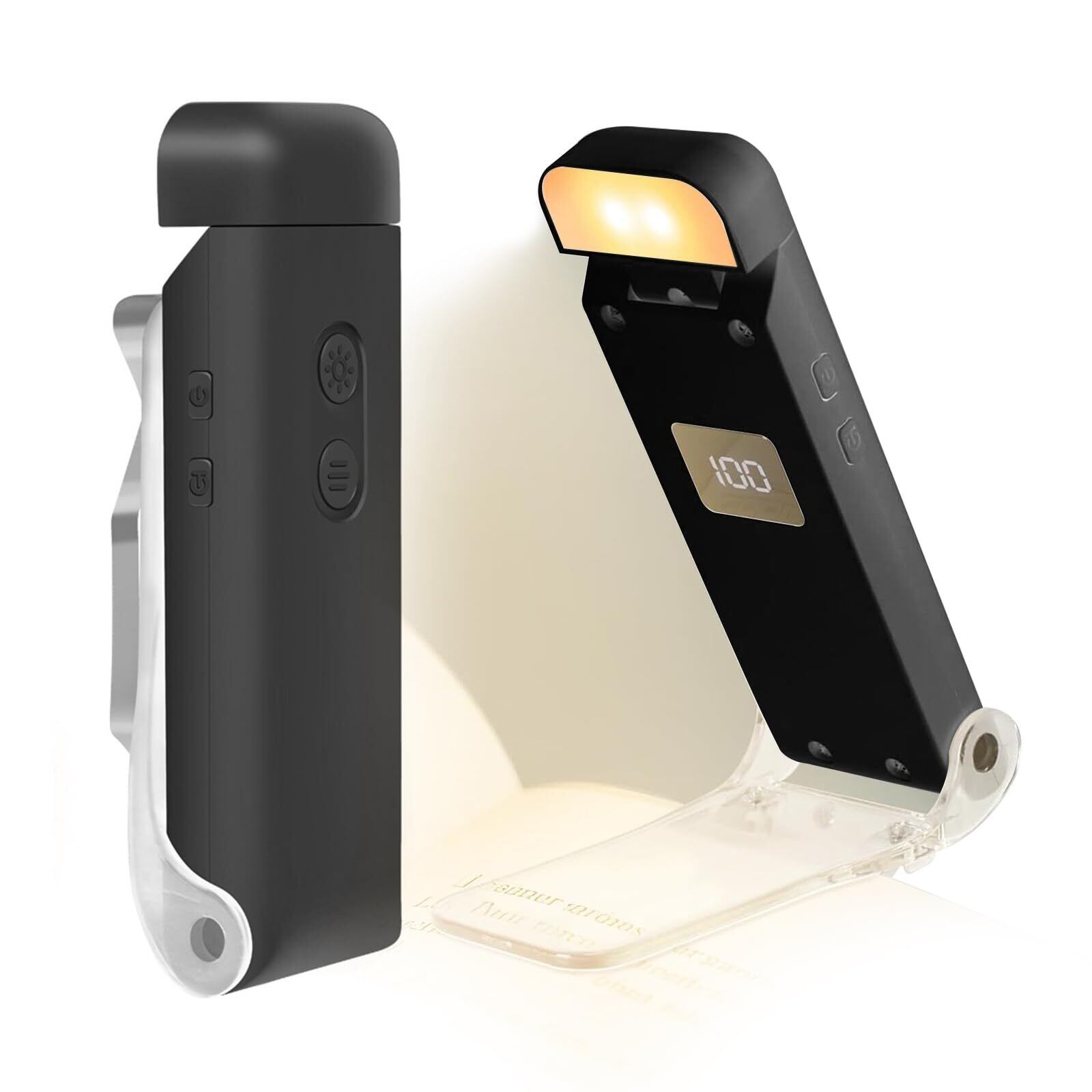 読書灯 ブックライト USB充電式 ポータブル 譜面灯 本につける 3段階調色・5段階調光 液晶ディスプレイ画面搭載 30/60分タイマー付き バッテリー残量表示 読書 ライト 小型 軽量 角度調節 夜間読書用 寝室 ブラック (ブラック)