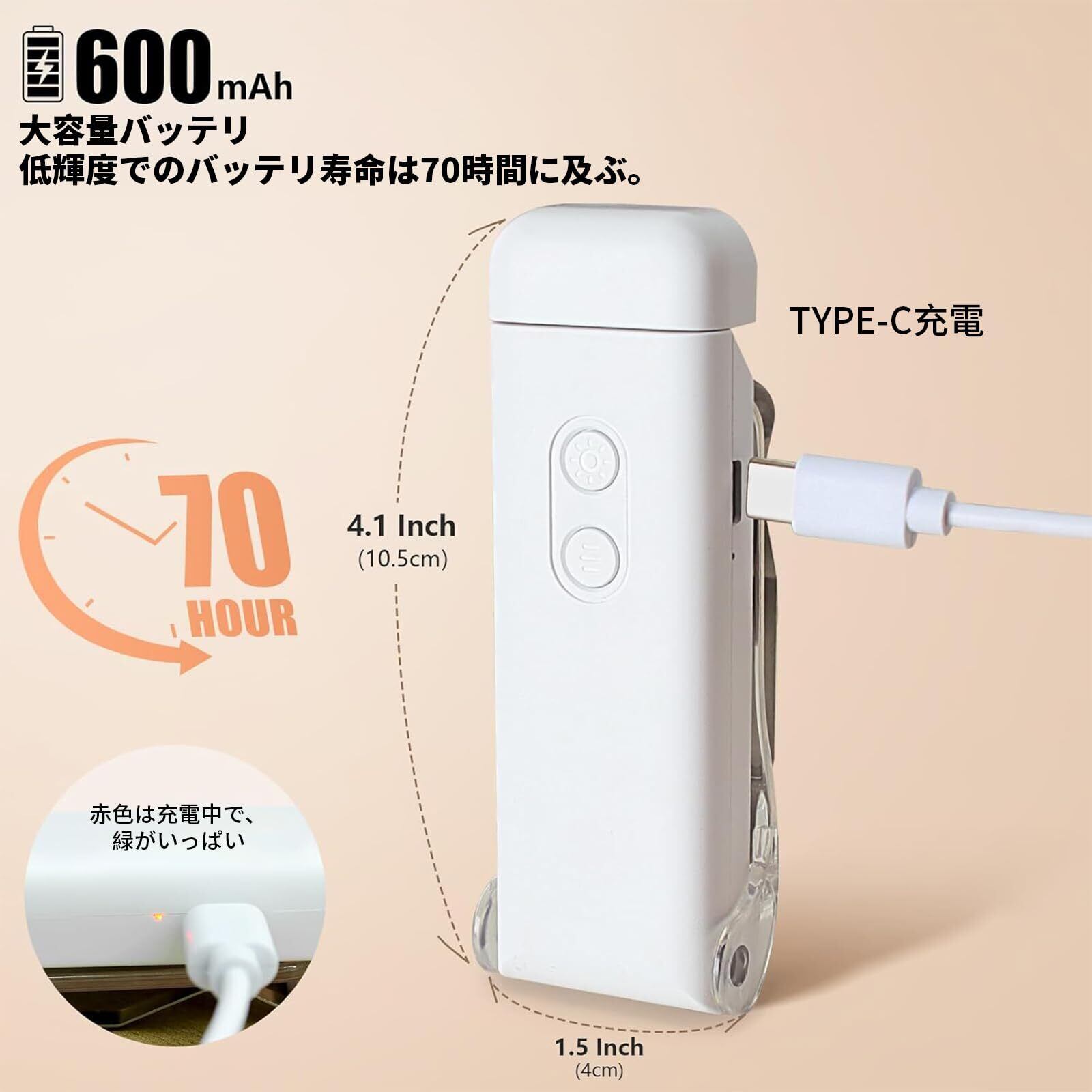 【USB充電で最長80時間】500mAhの内蔵バッテリーで、わずか1.5時間の充電時間でフル充電が可能。最低輝度設定で最大80時間の連続使用ができ、長時間の読書でも安心してご利用いただけます。USB充電対応で、パソコンやアダプター、USBポートから簡単に充電でき、便利で手軽に使えます。