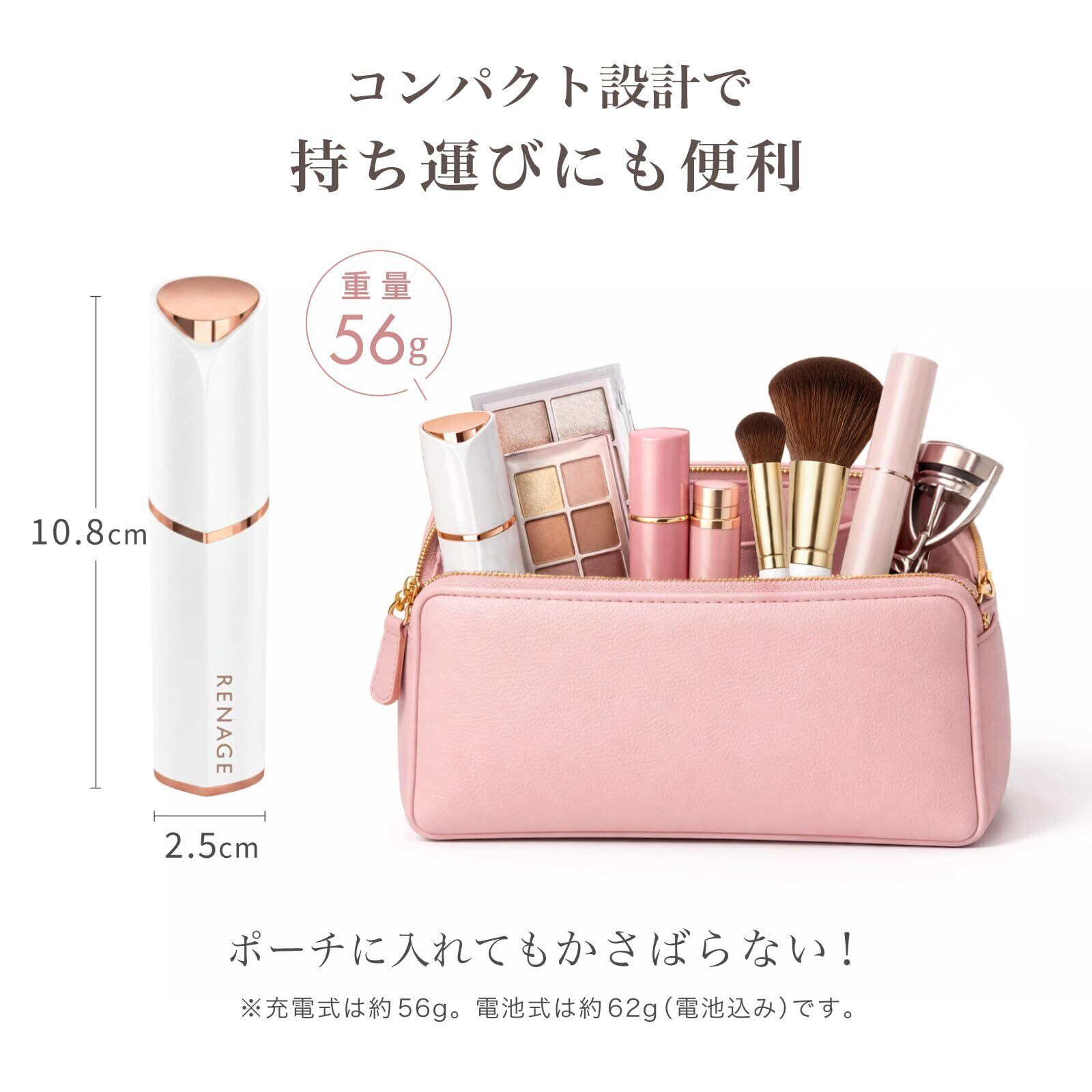 【小型軽量タイプで持ち運び簡単】 全長約10cm・重さ約56gの軽量コンパクト設計。ポーチにもすっきり収まり、外出先や旅行でも気軽に使えます。手のひらにフィットするサイズ感で、細かい部分のケアも思い通り。軽やかな使い心地で、どこでもスマートにお手入れできる頼れる1本です。