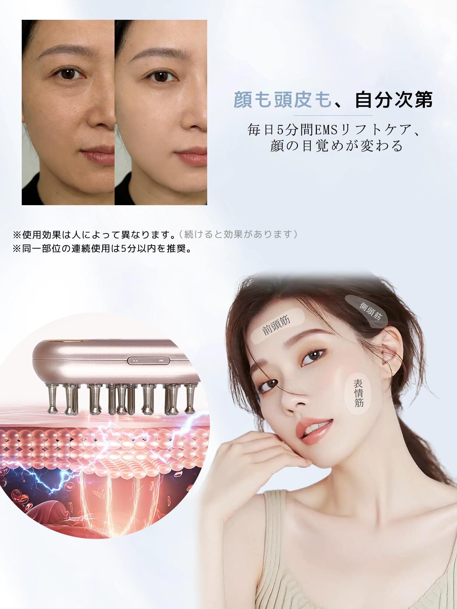 Ni Zmir 美顔器 電気ブラシ EMS リフトブラシ LED光エステ 頭筋 表情筋 頭皮ブラシ 頭皮ケア リフトケア Type-C充電式 IPX5防水 母の日 プレゼント 日本語の説明書付き