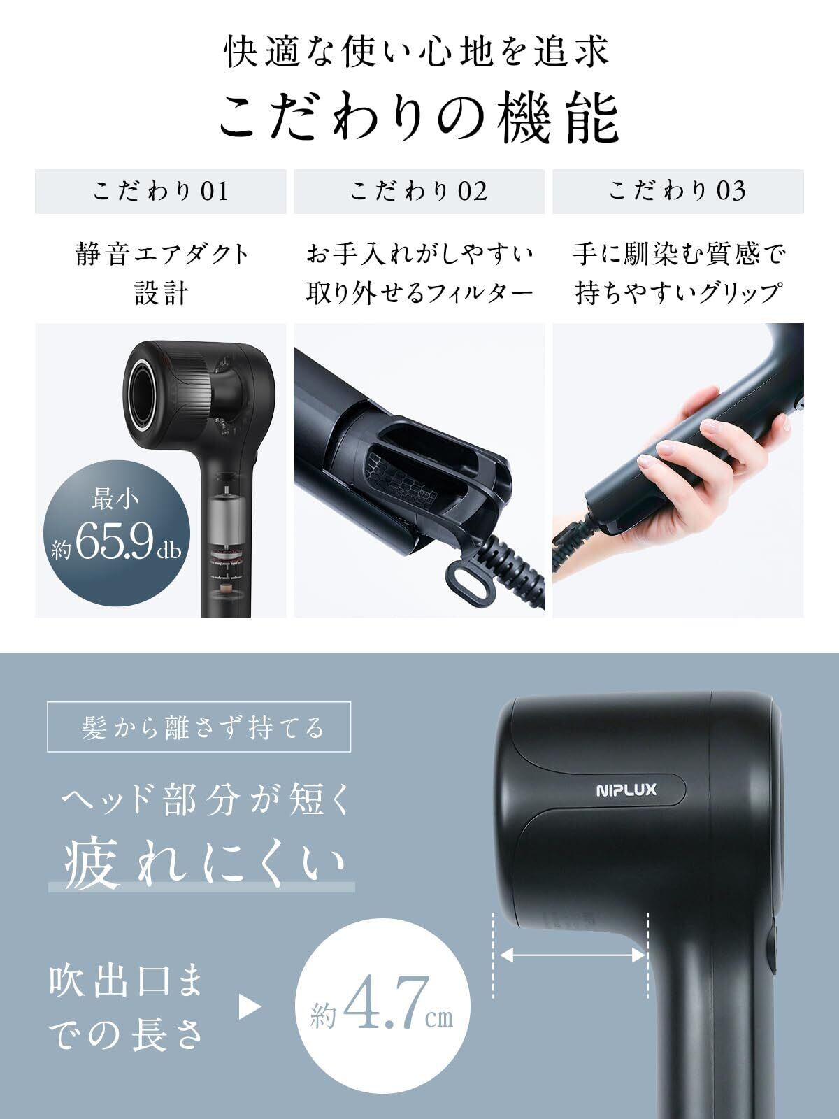 NIPLUX ヘアドライヤー 速乾 大風量ドライヤー 2.3億マイナスイオン 髪に優しいヘアケア 3段階調節可能 冷熱自動切替 高速 静音 円状送風口 静電気除去髪質改善 軽量 マグネット式 レディース ヘアサロン 家庭用/旅行用/出張 ニップラックス Hair Dryer