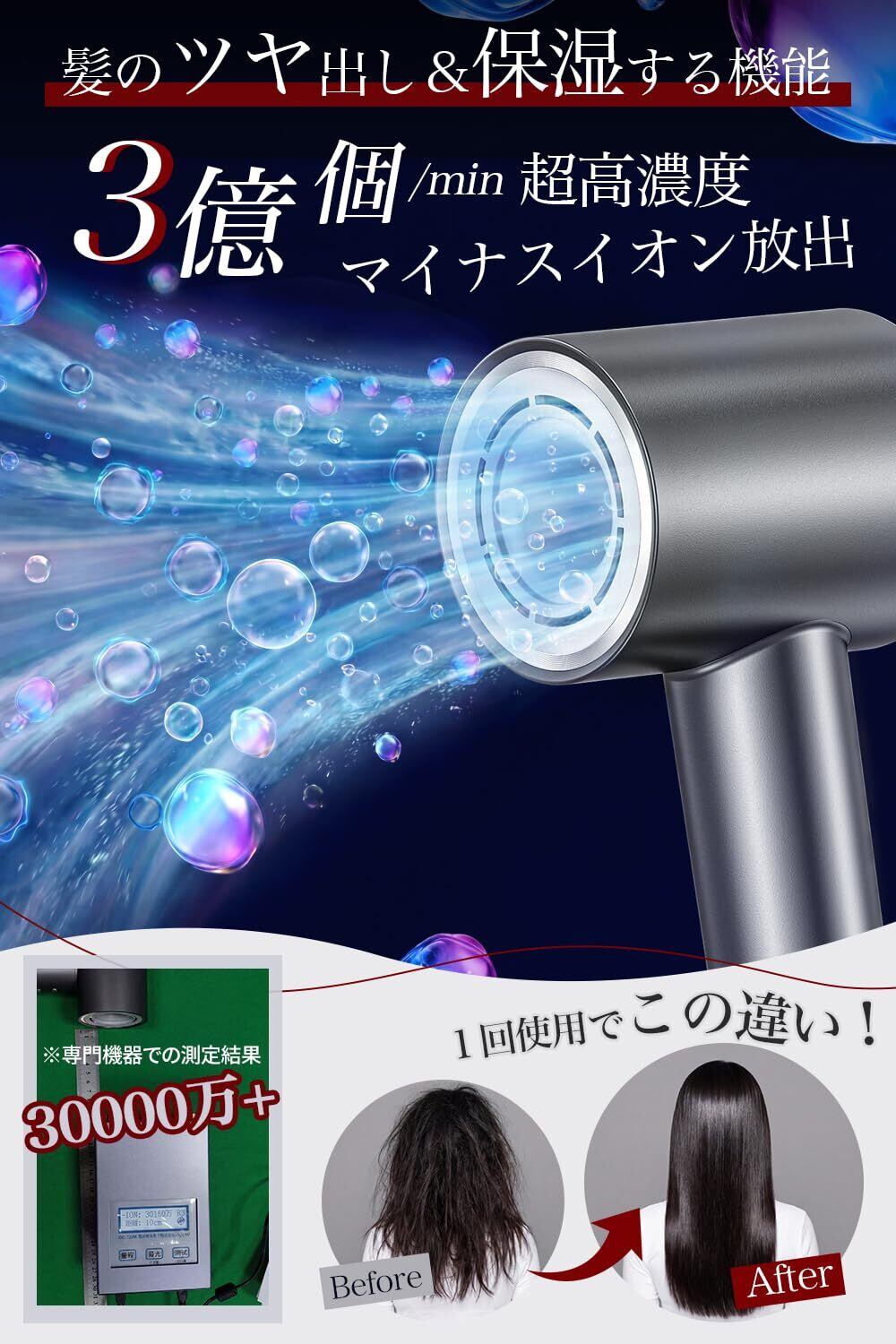 ドライヤー 大風量 速乾 3億個高濃度マイナスイオン 温冷風自動切替モード 美髪 ヘアケア 2段階風量x4段階風温 ヘアドライヤー ブラシレスDCモーター採用 メモリ機能 温度過昇防止装置搭載 恒温 50DB 低騒音 軽量 コンパクト hair dryer 静電気防止 マグネット式集風ノズル付き (グレー)