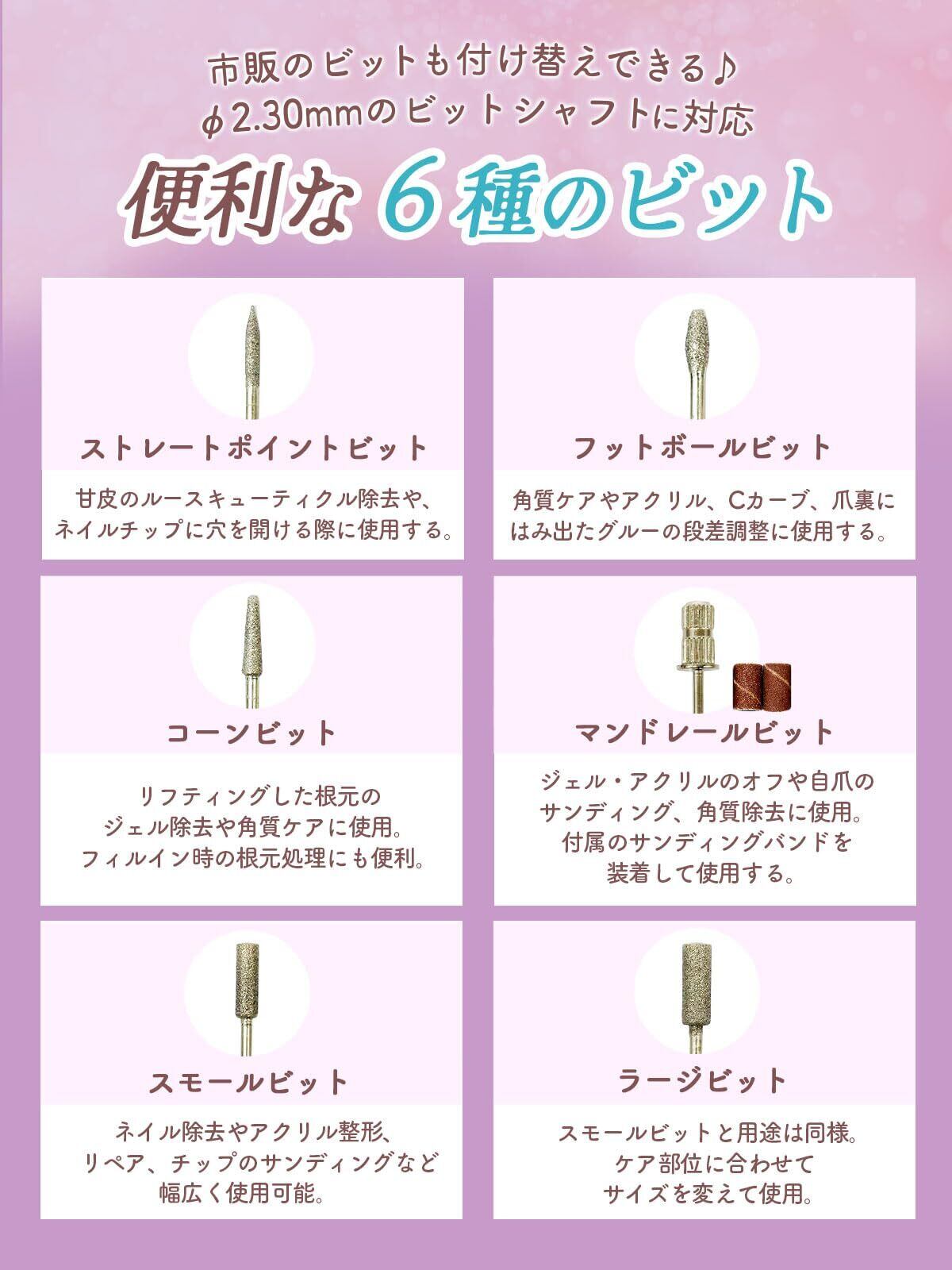【6種類のビット付き】ジェルオフ・甘皮ケア・角質除去・爪磨きまで。※オフするにはビットを別途で購入していただくのが良いです。