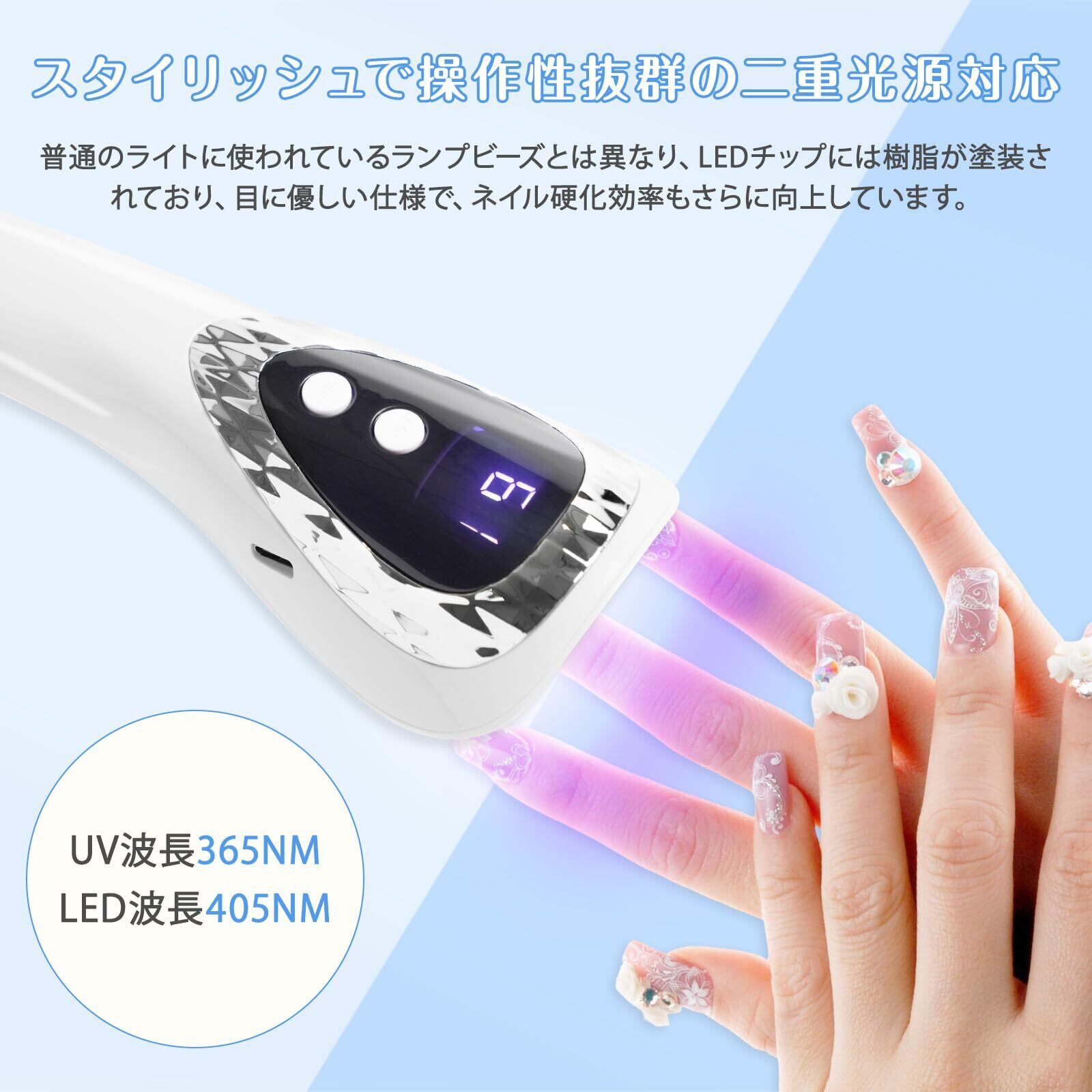 ネイルライト ネイルドライヤー コードレス UVライト 15W 5LEDs ディスプレイ付き 充電式 LEDネイルドライヤー 持ち運びやすい LEDライト 硬化ライト タイマー設定可能 ジェルネイル用 レジン用 2階段タイマー機能 ホワイト 日本語説明書付き