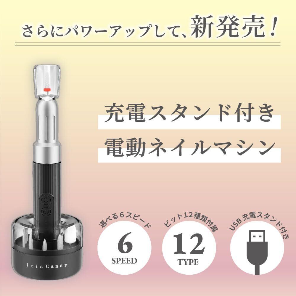 【数量限定】ネイルマシン プロ用 ネイル ケア マシーン ジェルネイル セルフ オフ マシン 電動 爪やすり コードレス USB充電 甘皮処理 メーカー1年 (ブラック)