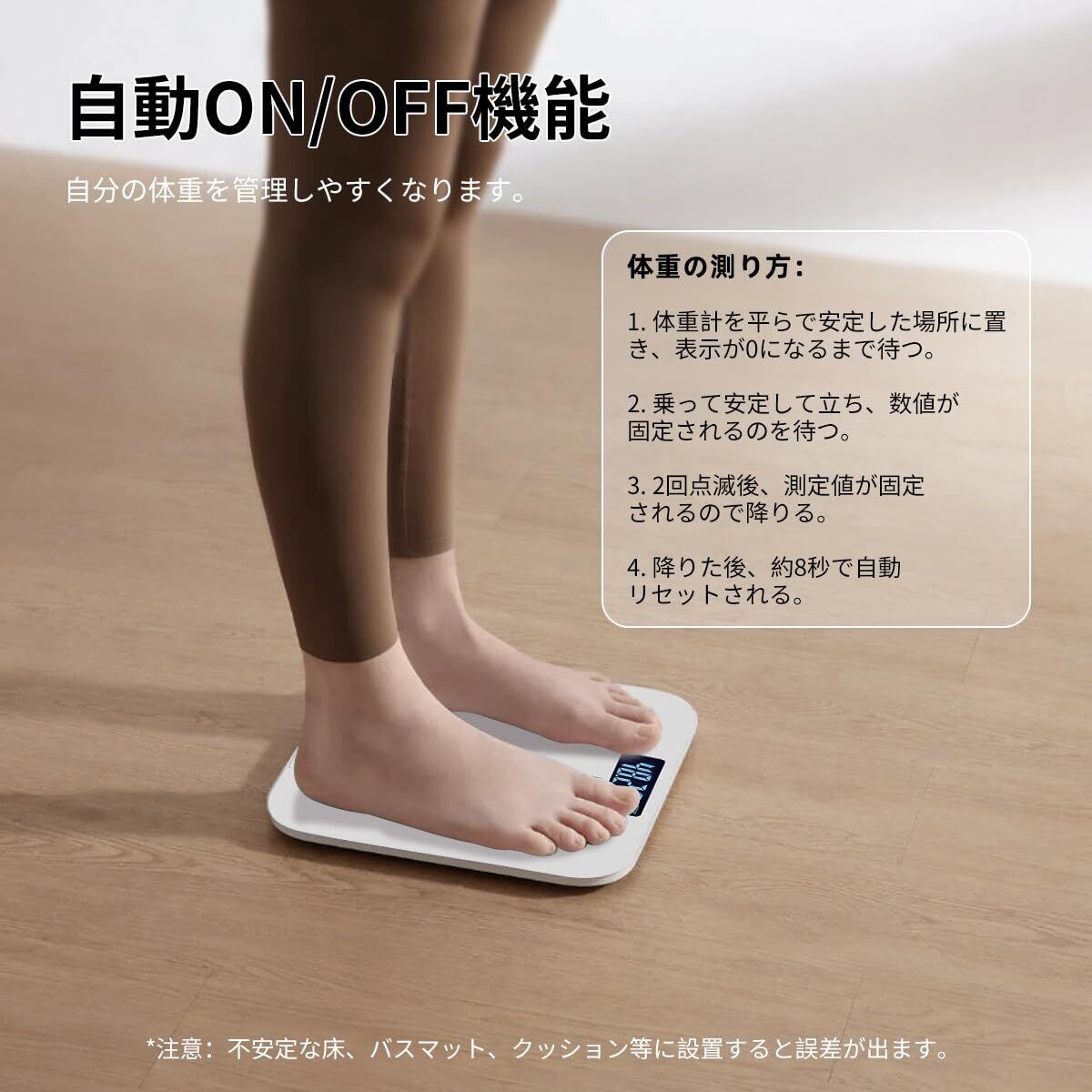 体重計 ヘルスメーター 電子スケール 2025最新 体重計 自動電源ON/OFF 180kgまで対応 高精度 軽量収納 便利に健康管理 日本語取扱説明書 (01White)