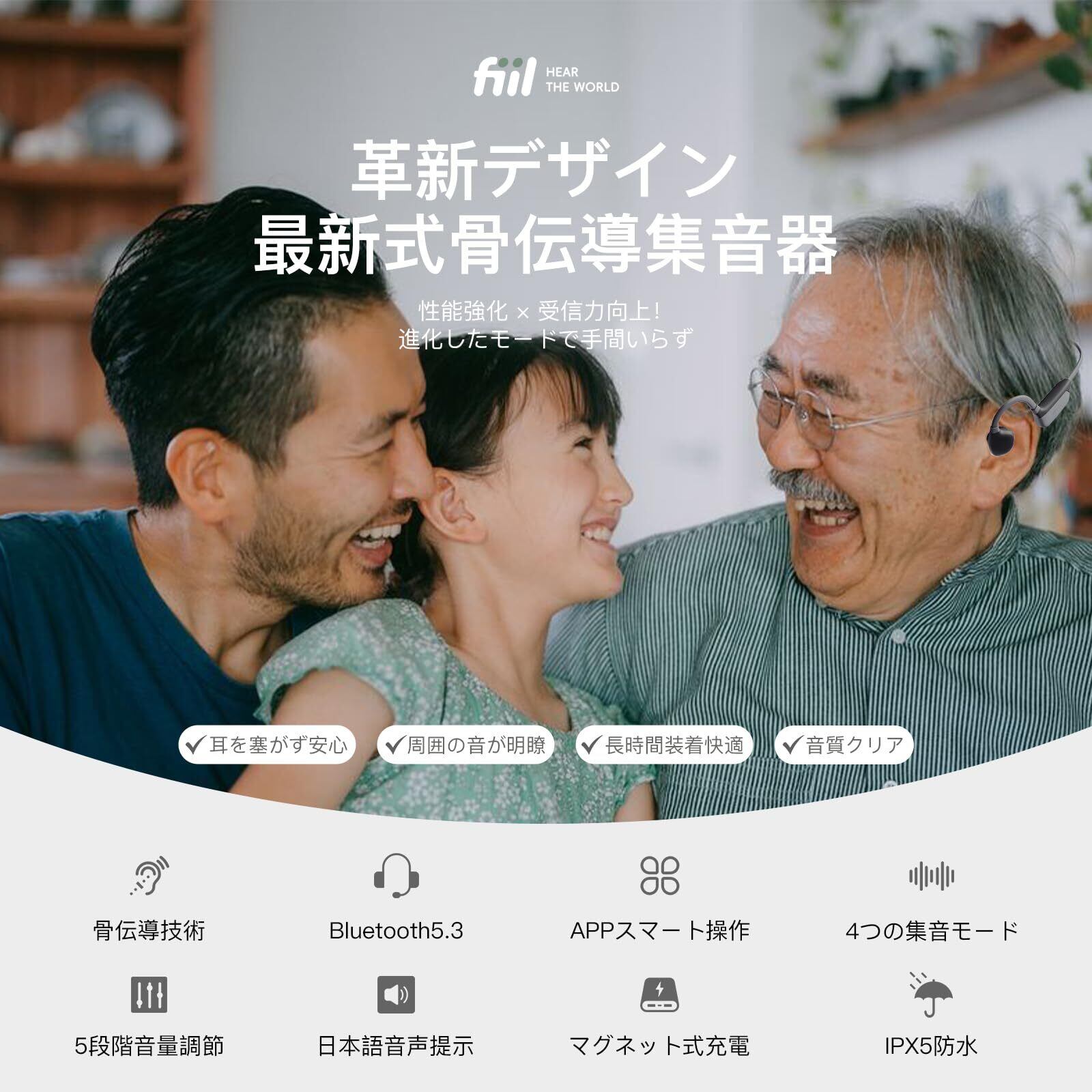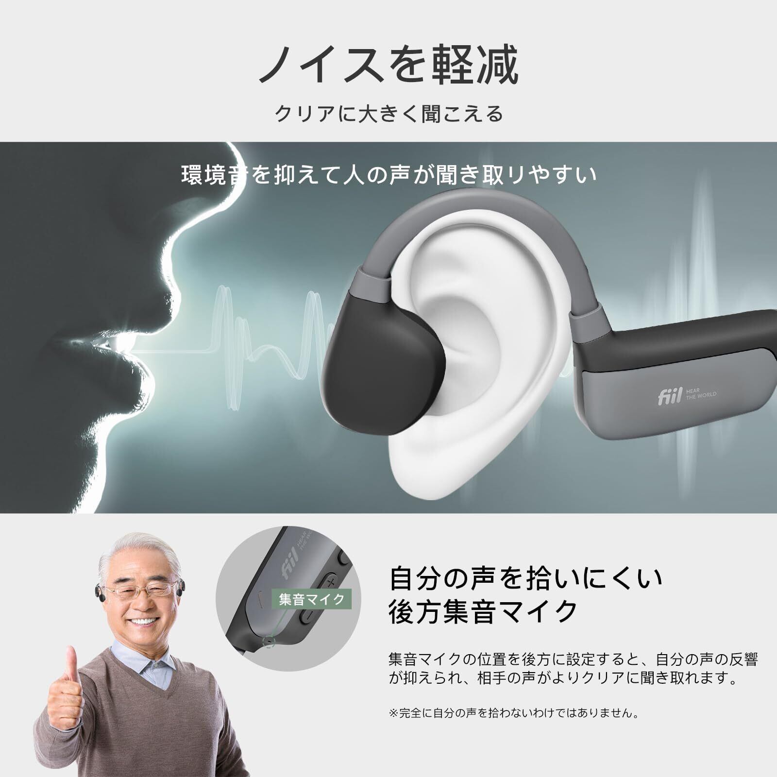 FIIL 集音器 骨伝導 高齢者 音声拡大/BT5.3音楽再生機器 耳を塞がない 騒音を軽減 簡単操作 室内外兼用 父の日/母の日/敬老の日