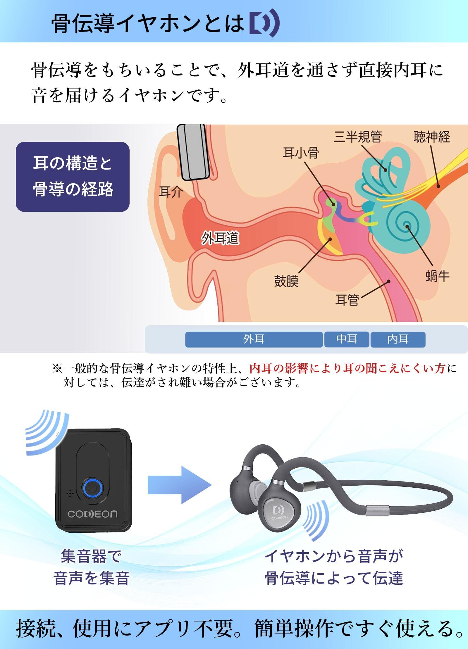コデオン 集音器 CODEON 集音器 骨伝導 イヤホン 高齢者向けコードレス 充電式 Bluetooth接続 リニューアル (CODEON)