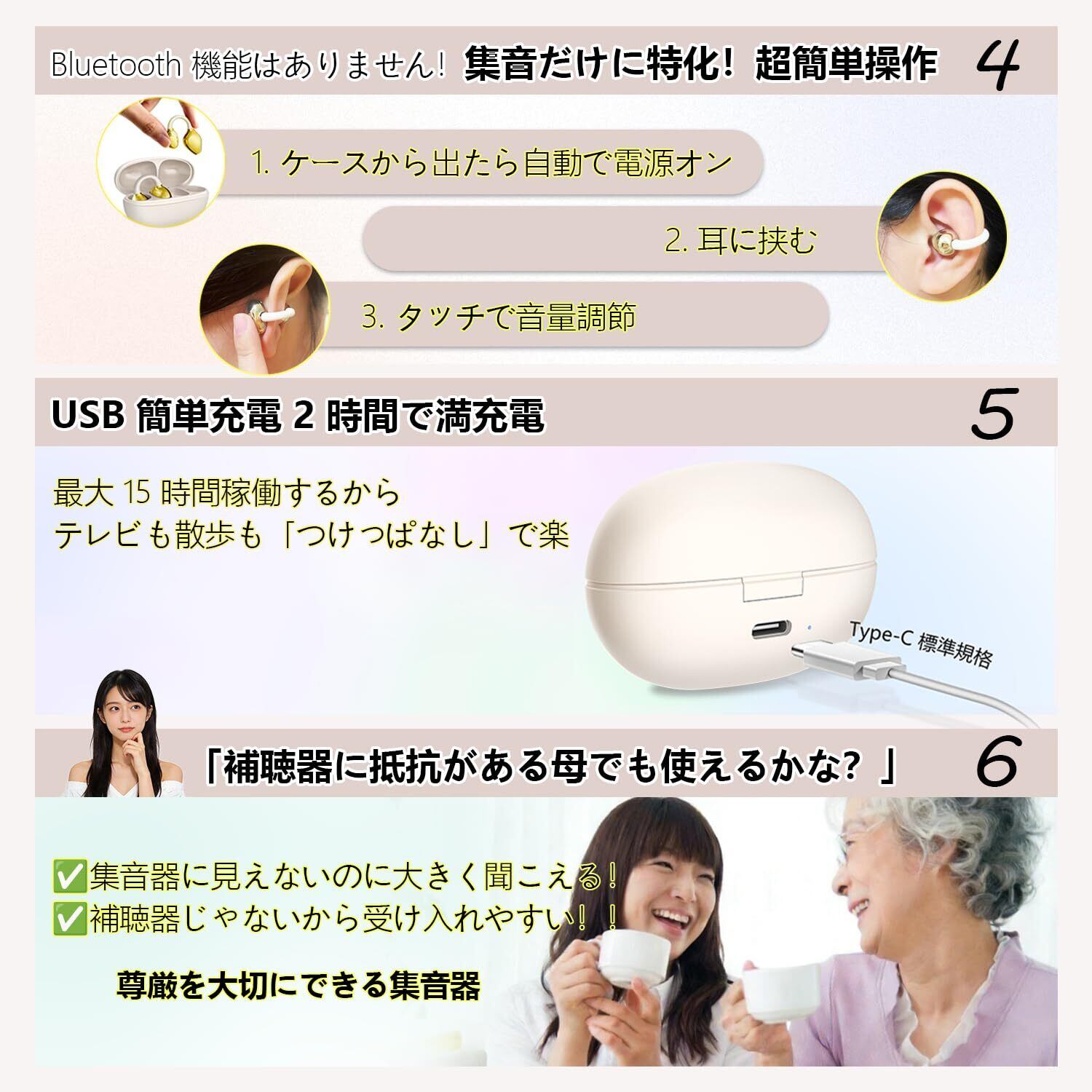 空気伝導 クリップ 集音器 しゅうおんき 高齢者 Type-C充電式 簡単操作 耳をふさがない 軽量 両耳対応 テレビ 会話 プレゼント
