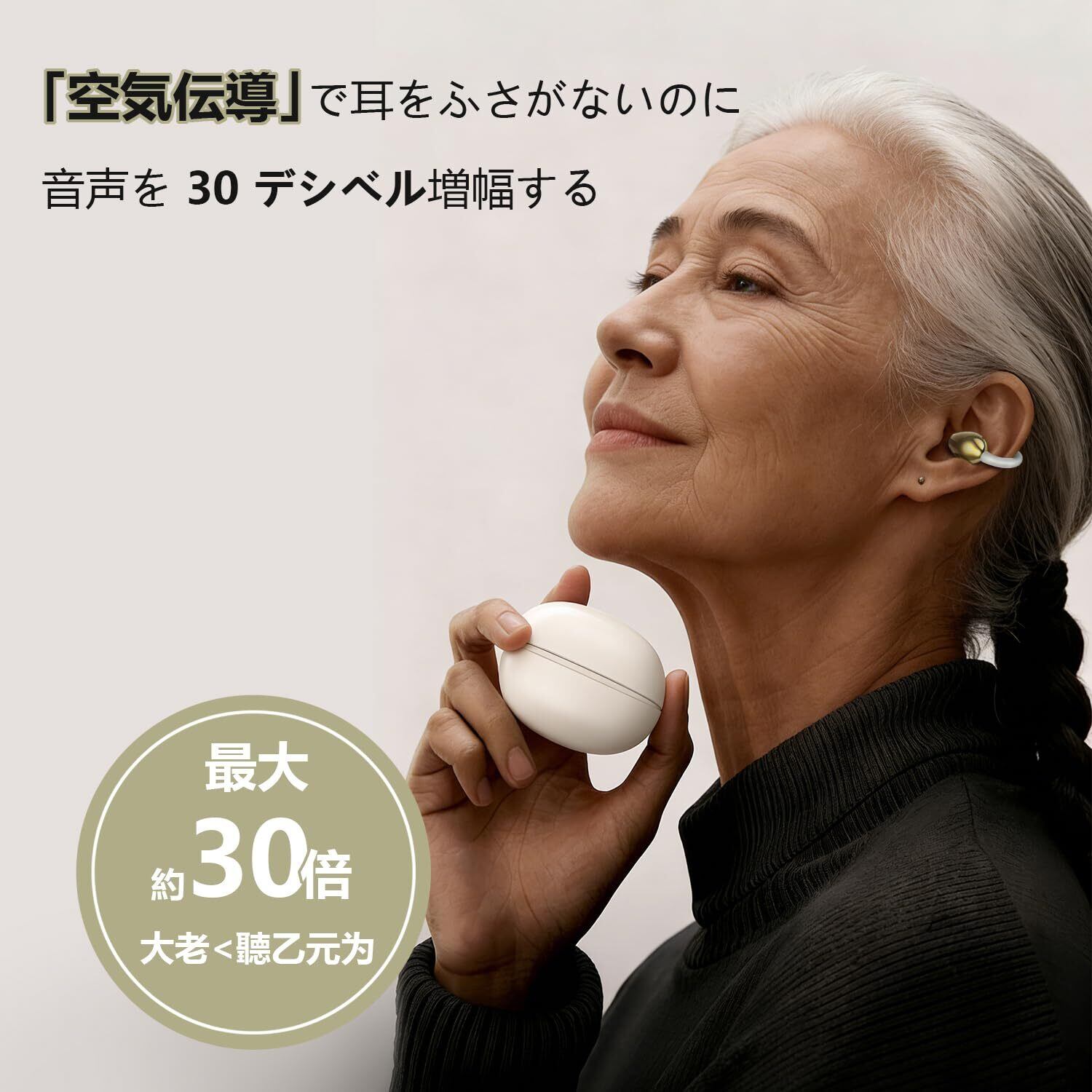 【2026年最新鋭・耳に入れない空気伝導技術】 2026年最新の空気伝導テクノロジーを採用。耳穴に押し込むことなく、空気の振動を通じて鼓膜へ直接音を届けます。高性能デジタルチップが周囲の環境音を瞬時に分析し、雑音を抑えて人の声だけをクリアにピックアップ。耳への優しさと聞こえやすさを両立しました。