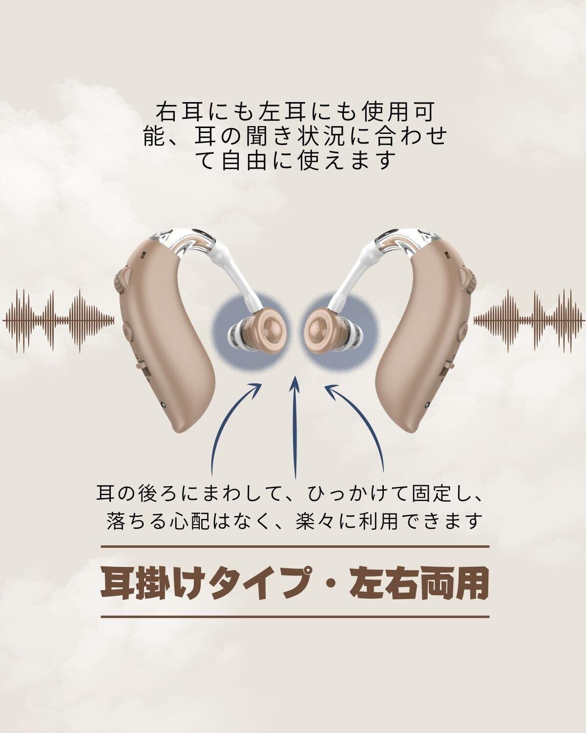 SUPLI 高齢者適用 集音器 音声拡張器 耳掛けタイプ 左右両用 充電式 音量4段階調整 環境騒音低減 ノイズ抑え 軽量 小型 イヤーピース4個付き 高齢者向け 両親 敬老の日 父の日 母の日 プレゼント (1, ベージュ)