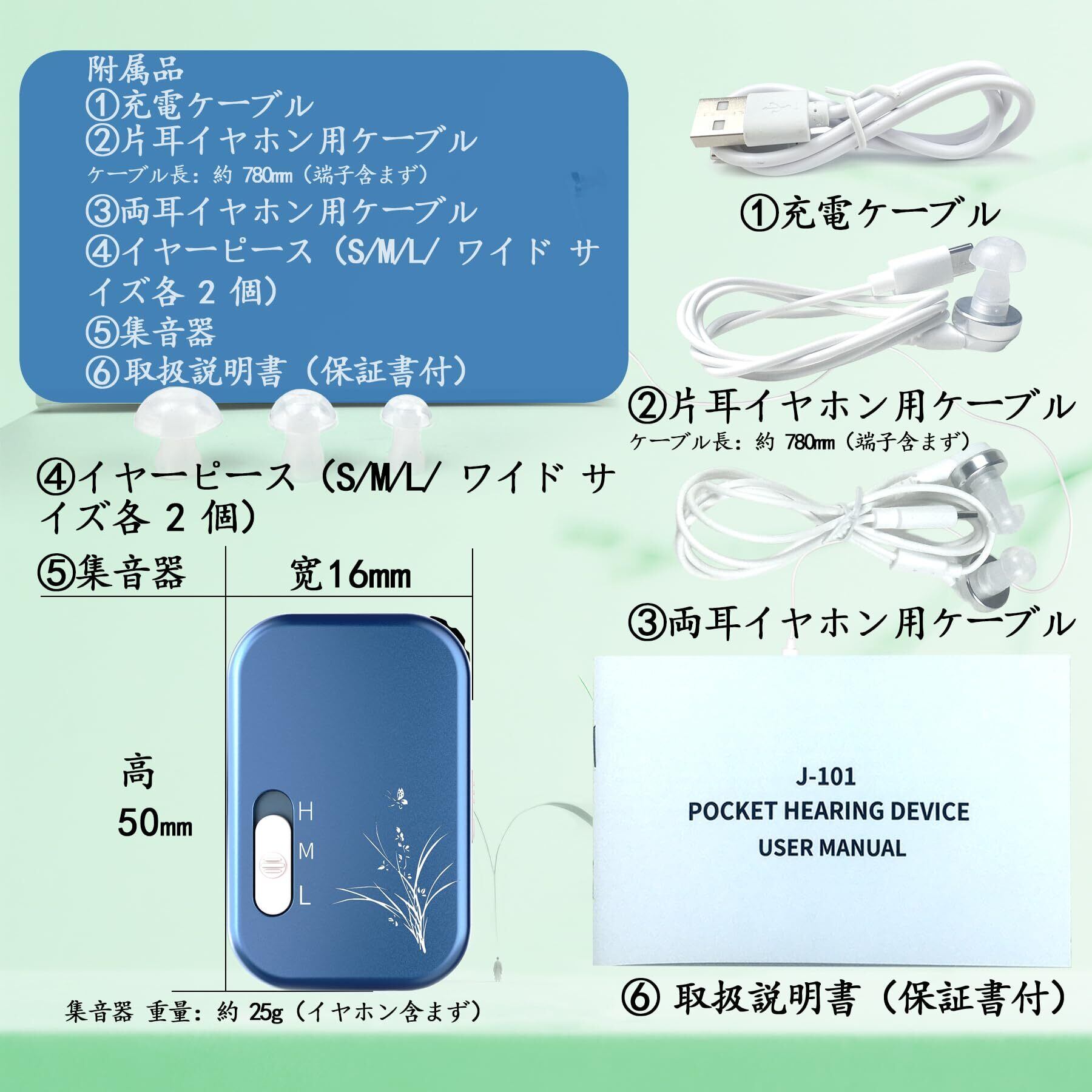 【贈り物に最適&1年間の品質】開封後すぐ使える充電式集音器です。セット内容:集音器本体、片耳イヤホン、両耳イヤホン、3サイズイヤーピース、、日本語取扱说明書、充電ケーブル。「母の日」「父の日」「敬老の日」「誕生日」などの贈り物にもぴったりです。本製品は1年間のメーカー。ご使用中に何か問題や不満な点がございましたら、お気軽にご連絡ください。お客様の問題には全力で対応させていただきます。