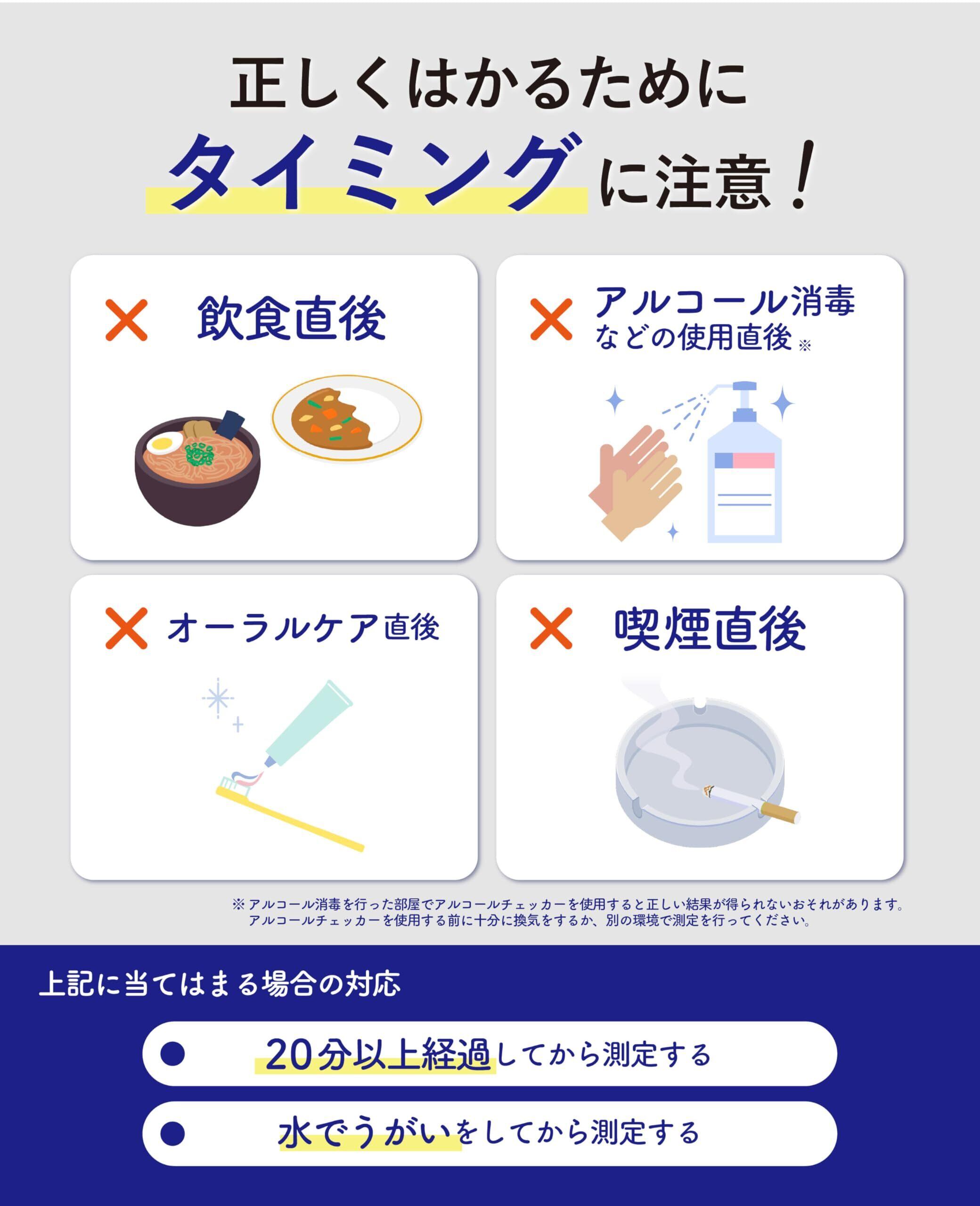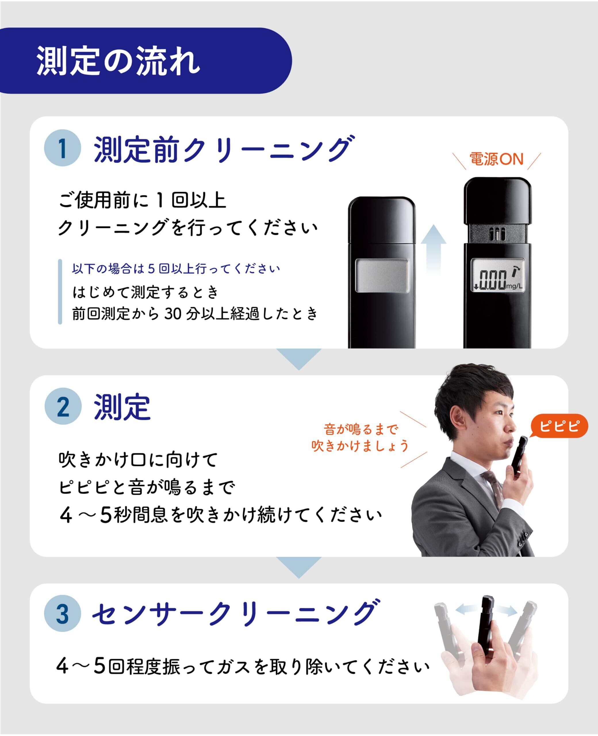 ・サイズ:約幅32×奥行17×高さ105mm ・電源:単4形アルカリ電池×2本 ・期間:1年間 ・セット内容・付属品:本体、お試し用電池(単4形アルカリ電池×2本)、チャック付きポリ袋、取扱説明書、webアンケート案内 ・呼気中アルコール濃度測定範囲::0.00 ~0.25mg/L 0.01mg/L 単位(0.05mg/L 未満は 0.00mg/L 表示) ・センサー使用回数表示:0~999回、1,000回以上はSENSOR・OVER表 ・センサー寿命:購入後1年経過または1,000回測定した場合のどちらか早い方