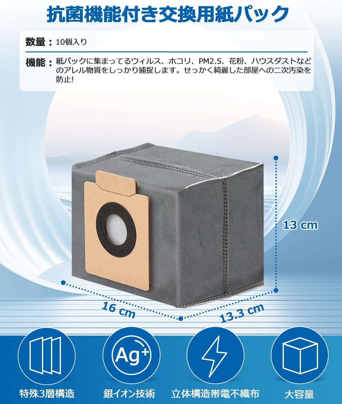 Eufy X8 Pro / X10 Pro Omni 用 ダストバッグ ロボット掃除機 ゴミパック 紙パック 消耗品 10枚入り