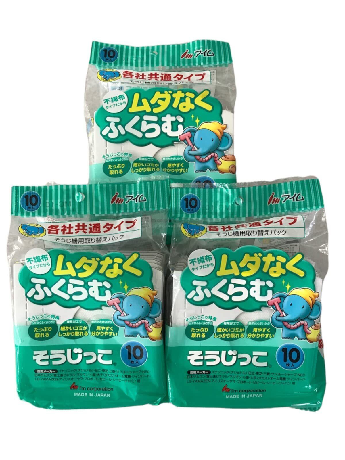 アイム 掃除機 取り替え 紙パック 各社共通タイプ そうじっこ 10枚入 × 3個セット ホワイト 約高さ30×幅28×厚さ9cm