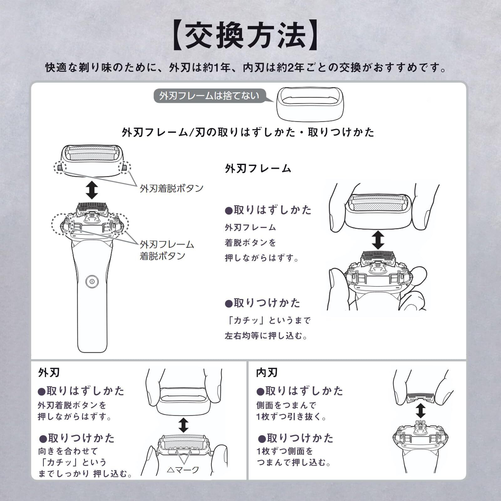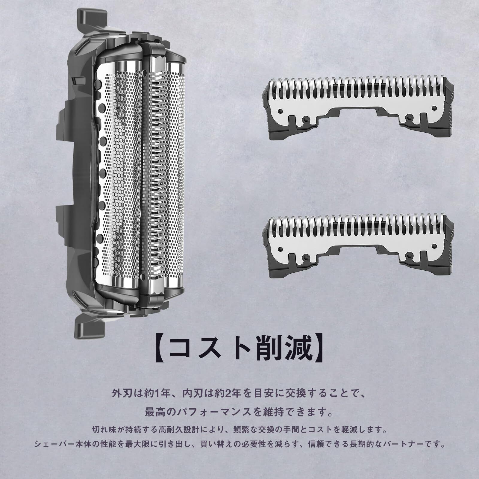 【コスト削減】外刃は約1年、内刃は約2年を目安に交換することで、最高のパフォーマンスを維持できます。切れ味が持続する高耐久設計により、頻繁な交換の手間とコストを軽減します。シェーバー本体の性能を最大限に引き出し、買い替えの必要性を減らす、信頼できる長期的なパートナーです。