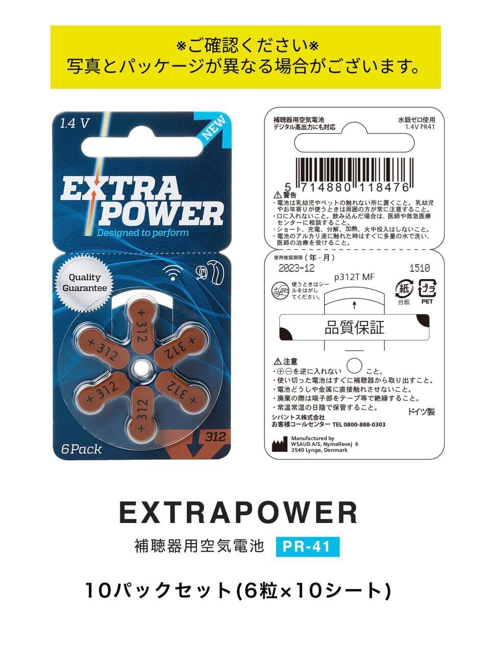 【在庫処分】シバントス 補聴器用空気電池 PR41(312) 10パック(60粒入り) EXTRA POWER 高 品質 ドイツ製 環境に優しい水銀0