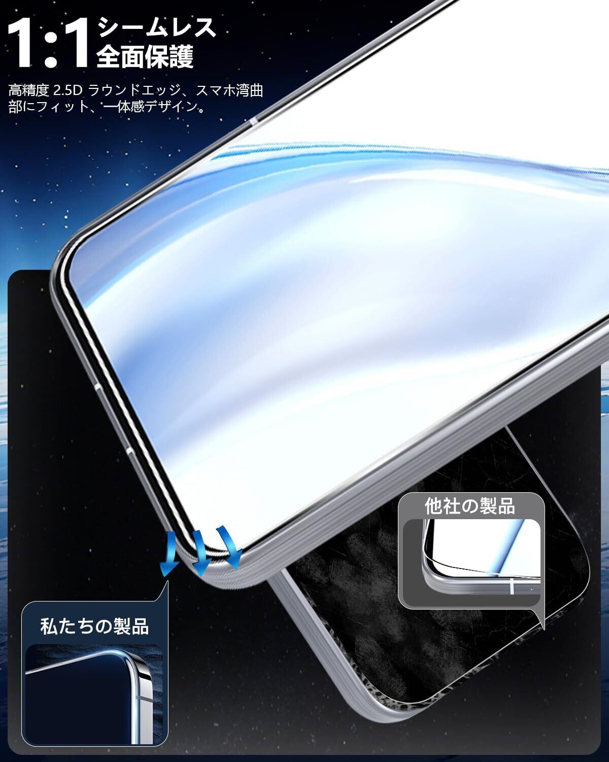 【高透過率】 高品質の日本製旭硝子素材を採用することで透過性がに達しています。市販のガラスフィルムより透明度が高くて、液晶画面の本来の美しさを損なわないません。高精細度でいつでも写真やビデオを楽しむことができます。