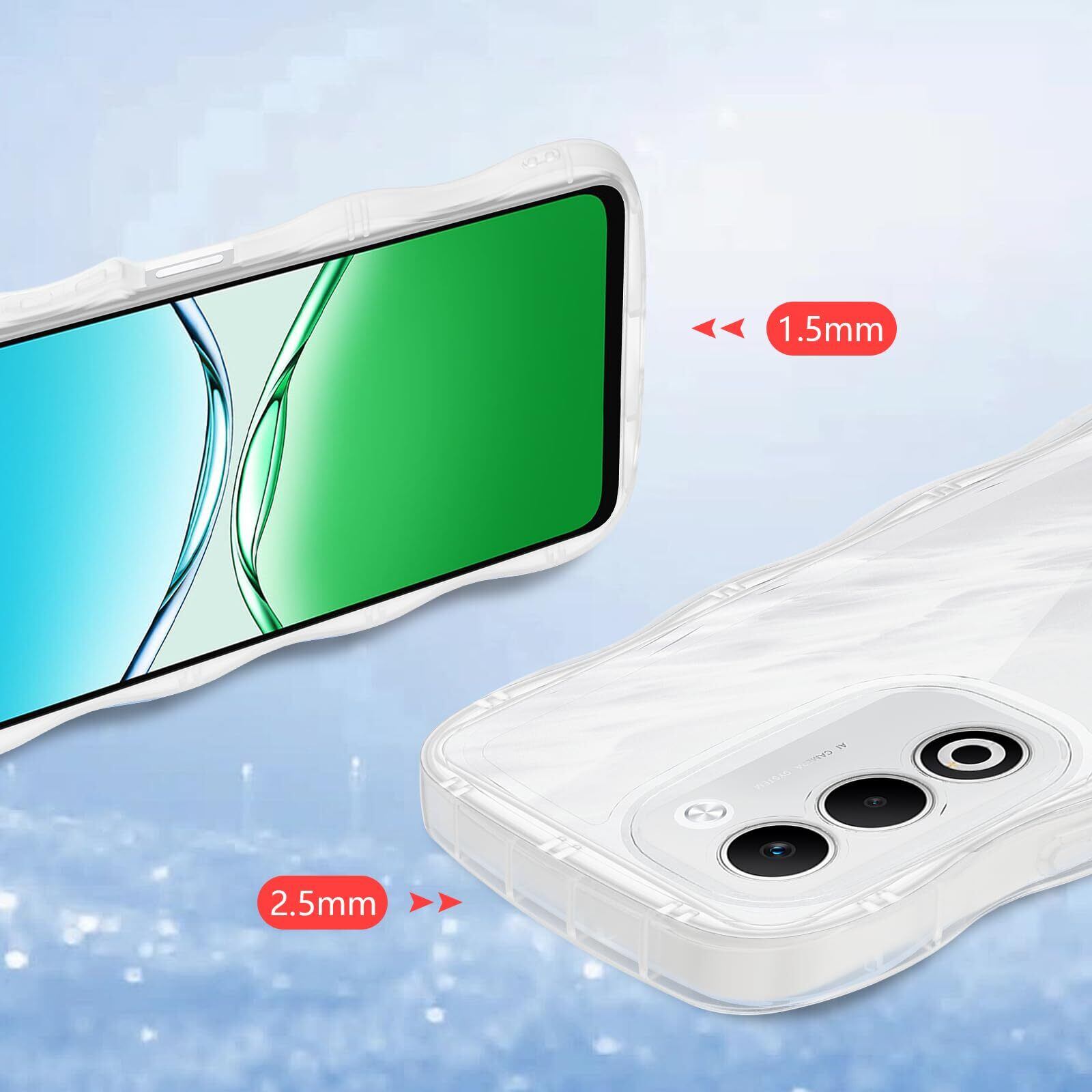 OPPO A5 5G ケース クリア ウェーブ TPU波状のバンパー 透明 スマホケース かわいい うねうね A5 5G ウェーブ デザイン 可愛い 韓国 女性用 薄型 人気 おしゃれ 耐衝撃 OPPO A5 5G ストラップホール付き(OPPO A5 5G-クリア)