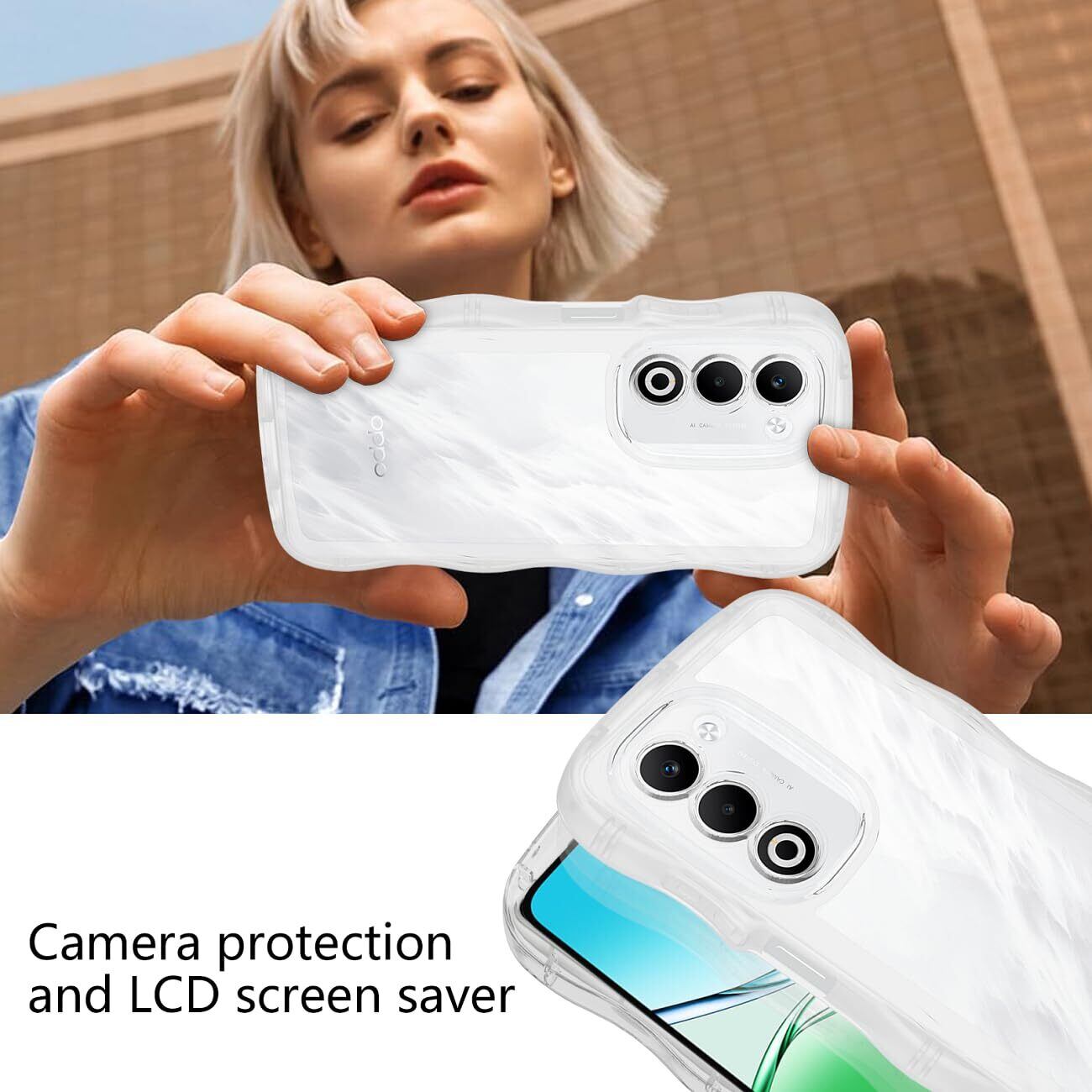 【数量限定】OPPO A5 5G ケース クリア ウェーブ TPU波状のバンパー 透明 スマホケース かわいい うねうね オッポ A5-5G ウェーブ デザイン 可愛い 韓国 女性用 薄型 人気 おしゃれ 耐衝撃 ストラップホール付き(クリア)