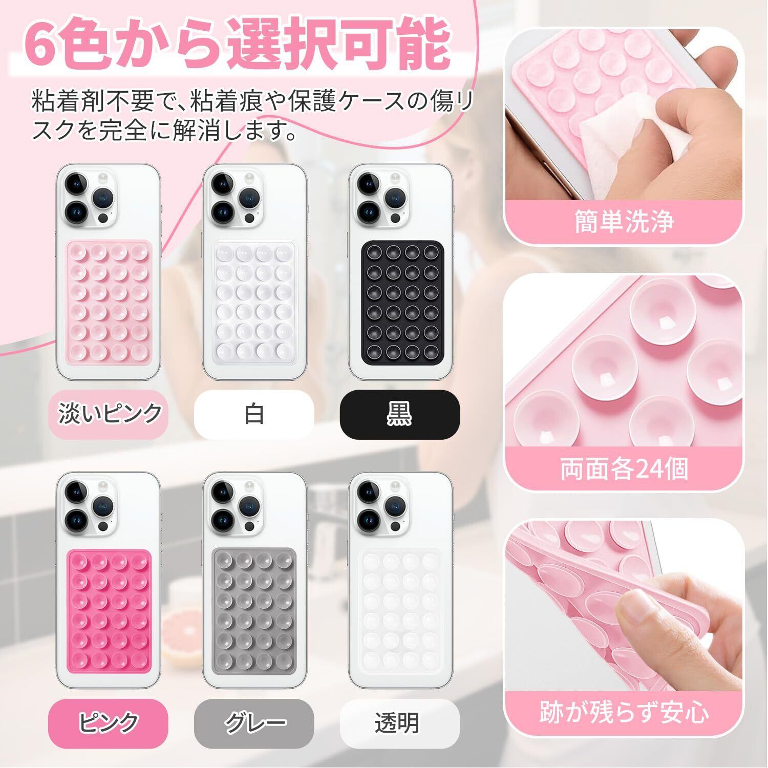 スマホ 吸盤 4枚入り 両面吸盤 スマホ 24 グレイン高密着 7.6×5.3cm 強力吸着 滑り止め設計 ガラス/鏡面/キッチン対応 両手解放で 自撮り/動画通話/料理補助に最適 iPhone/Android 全機種対応 スマホホルダー