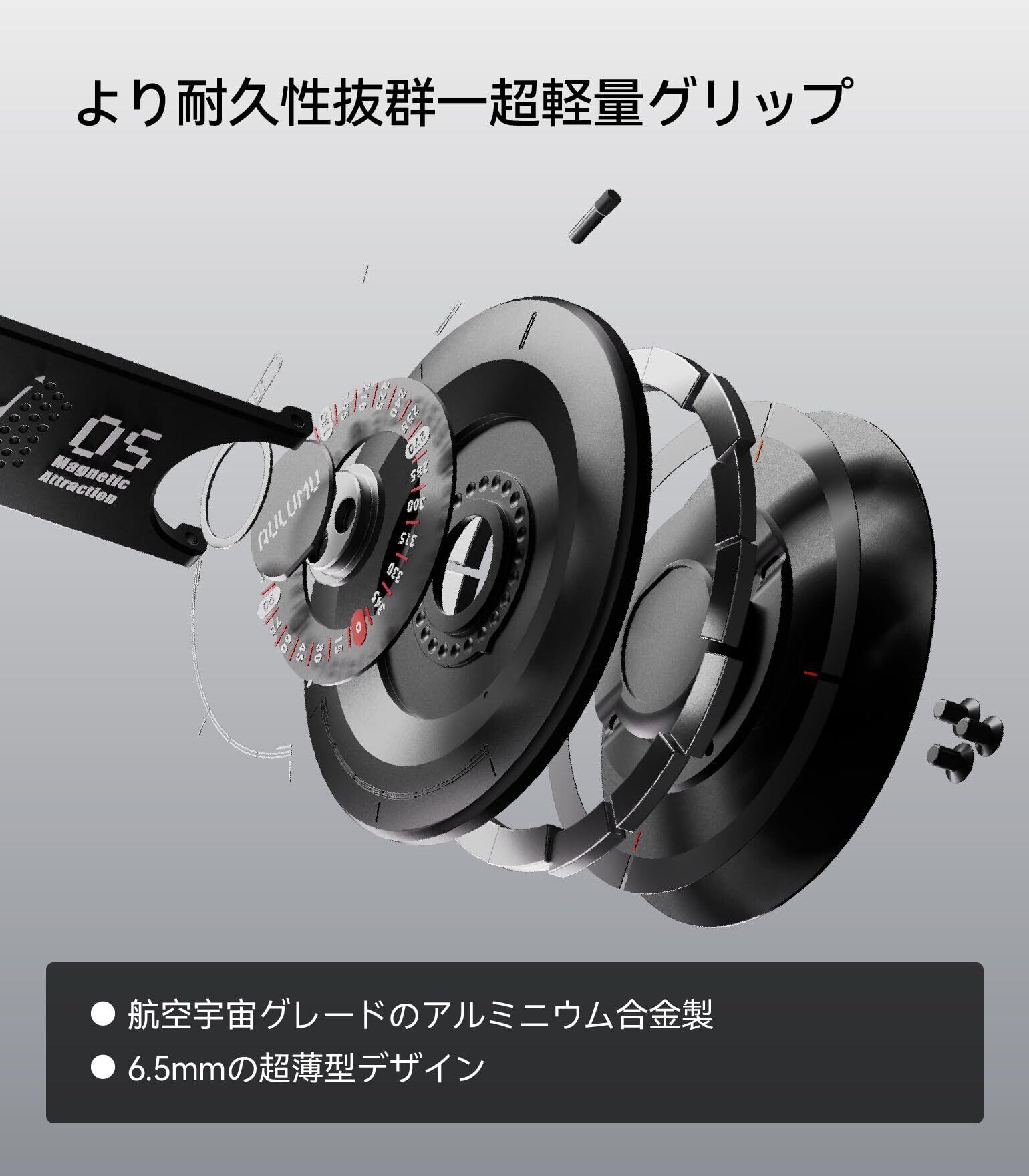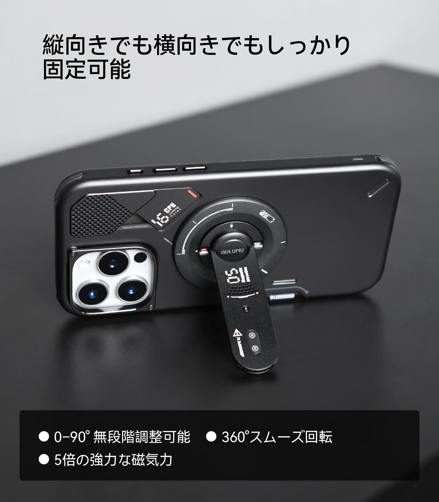 【在庫セール】Aulumu G05 Air Magsafe リング360°回転式アルミ製・セラミックブレード内蔵 - iPhone 17/16/15/14/13/12シリーズ対応 - ブラック