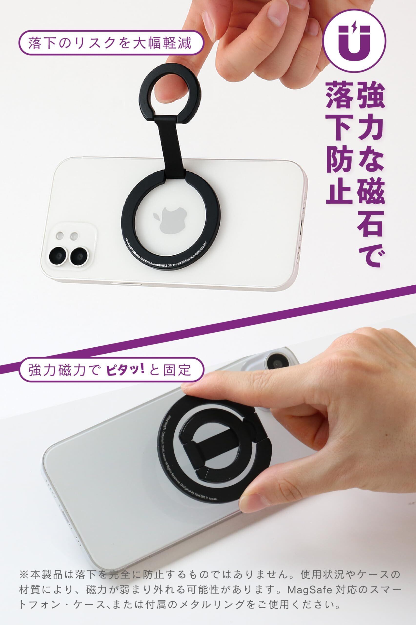 【非接着で着脱ラクラク・跡残りなし】粘着式リングとは異なり、磁石で装着・取り外しが可能。そのため、使用シーンに応じて簡単に着脱でき、スマホ本体やケースに接着跡が残る心配もありません。さらに、使用しないときはすぐに取り外せるため、ワイヤレス充電もスムーズに対応可能。機能性と利便性を両立した設計です。