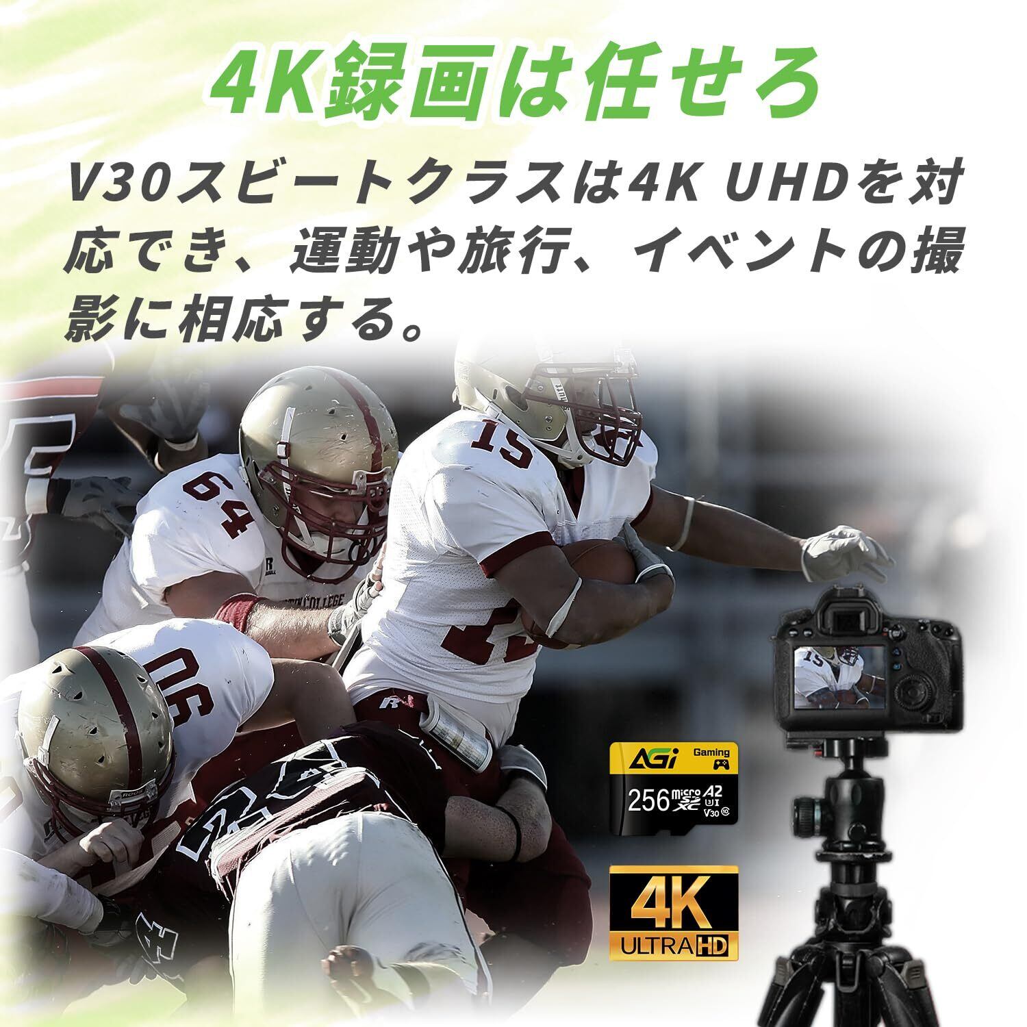 最大読み込み速度は95MB/秒、最大書き込み速度は70MB/秒です。A2クラス、V30およびU3仕様のAGI TF138は、スムーズな4K超高速録画体験を実現し、ゲームや動画をフリーズすることなく楽しむことができます。