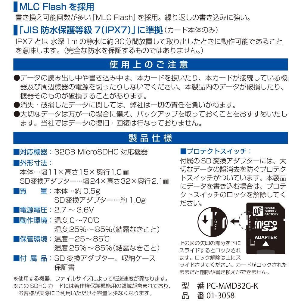 オーム電機 高耐久マイクロSDメモリーカード 32GB PC-MMD32G-K 01-3058 OHM
