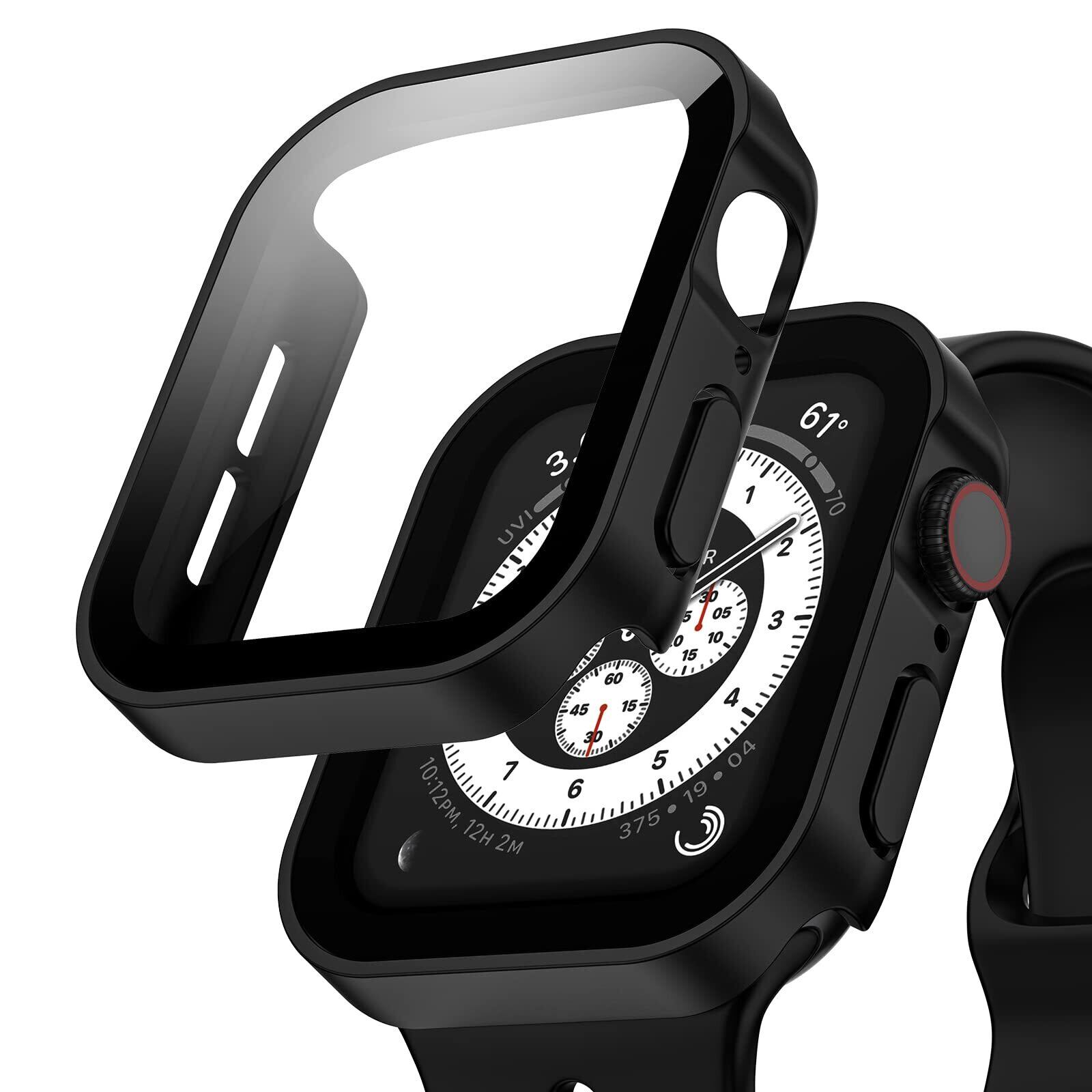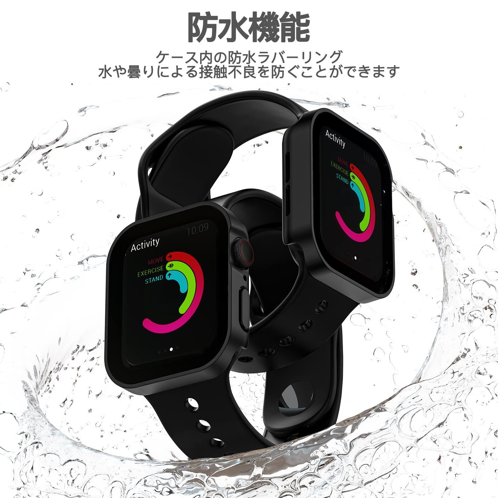 Apple Watch 用 防水ケース 45mm 44mm 41mm 40mm アップルウォッチ ケース 3D直角エッジデザイン 保護 アップルウォッチ Series 6/SE/5/4 カバー ガラスフィルム 一体型 高透過率 硬度9H 一体型 軽量 全面保護 頑丈 耐衝撃 装着簡単 iwatch (44mm,マットのブラック)