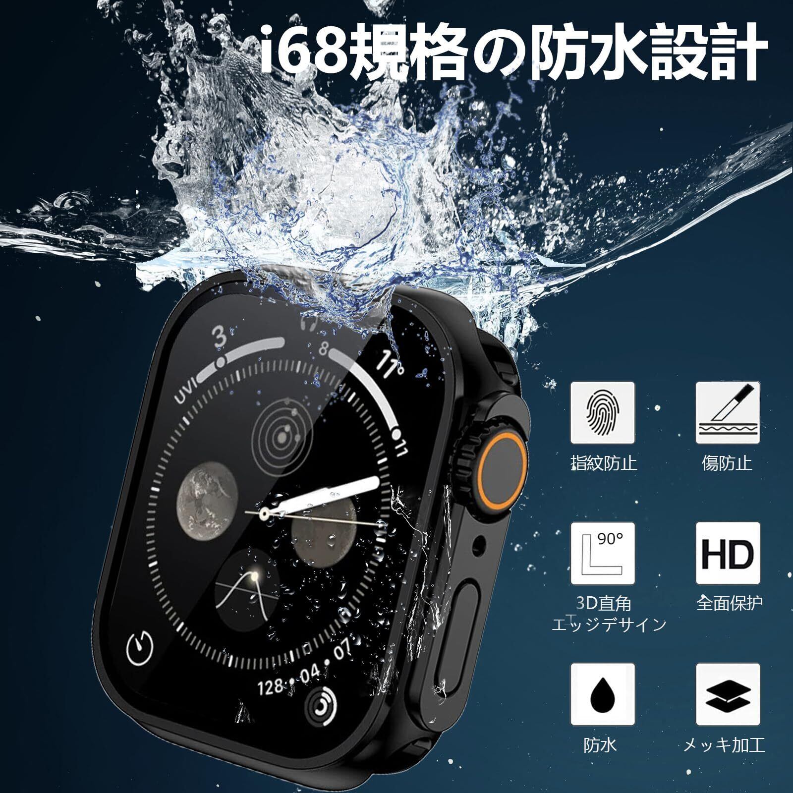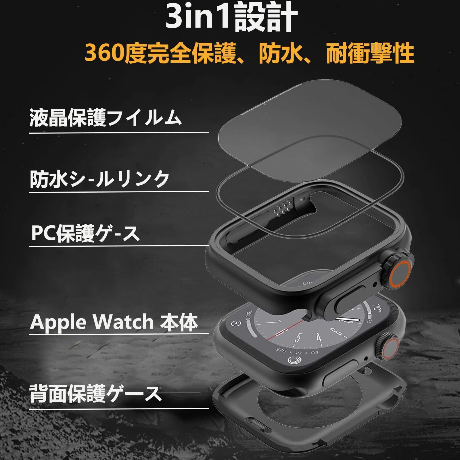 【防水・防塵ケース】シーリングリング内蔵したアッApple Watch ケース、アップルウォッチの画面にぴったりとフィットし、アップルウォッチ前面カバーと背面カバーの2 in 1全周保護設計で,表面から裏面まで 360度の全面保護します、IP67防水、防塵設計。ケースを取り外して水を拭くすることを繰り返す必要はありません。疎水性撥油性抜群の強化ガラス表面により、カバー面に水が溜まらず、シャワー、手洗い、発汗、運動、雨など、日常の使用に適しています。